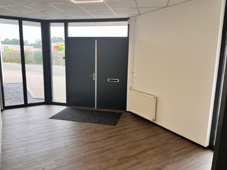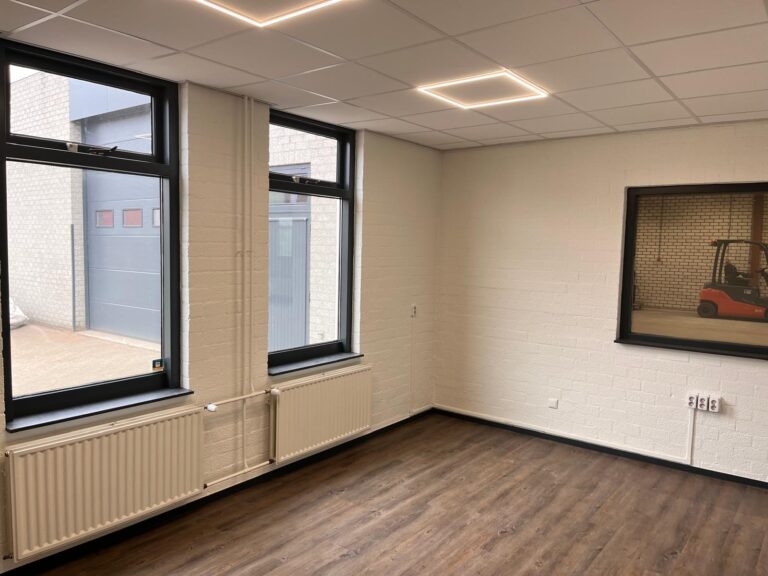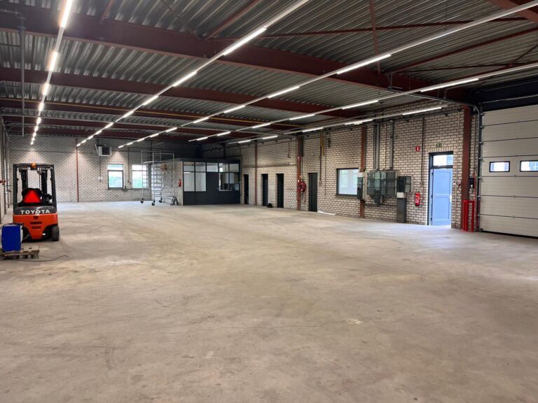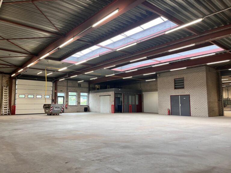 Deze onlangs gerenoveerde bedrijfsruimte is volledig gemoderniseerd en opgebouwd uit een stalen constructie met metselwerkgevels en aluminium kozijnen. Het dak is recent vernieuwd, geïsoleerd en voorzien van lichtstraten, wat zorgt voor natuurlijk daglicht. De vloeren zijn monolithisch afgewerkt en de ruimte beschikt over twee elektrisch bedienbare sectionaalpoorten, waarvan één recent is vervangen. De bedrijfsruimte wordt verwarmd door een nieuwe direct gestookte gasheater. De kantoren zijn uitgerust met nieuwe plafonds, energiezuinige LED-verlichting, een frisse afwerking van muren en deuren, en stijlvolle PVC-vloeren. Zowel de kantine als de keuken zijn vernieuwd en voorzien van modern schilderwerk en inbouwapparatuur. Het buitenterrein is volledig omheind, deels verhard en deels voorzien van grind, en beschikt over een toegangspoort.