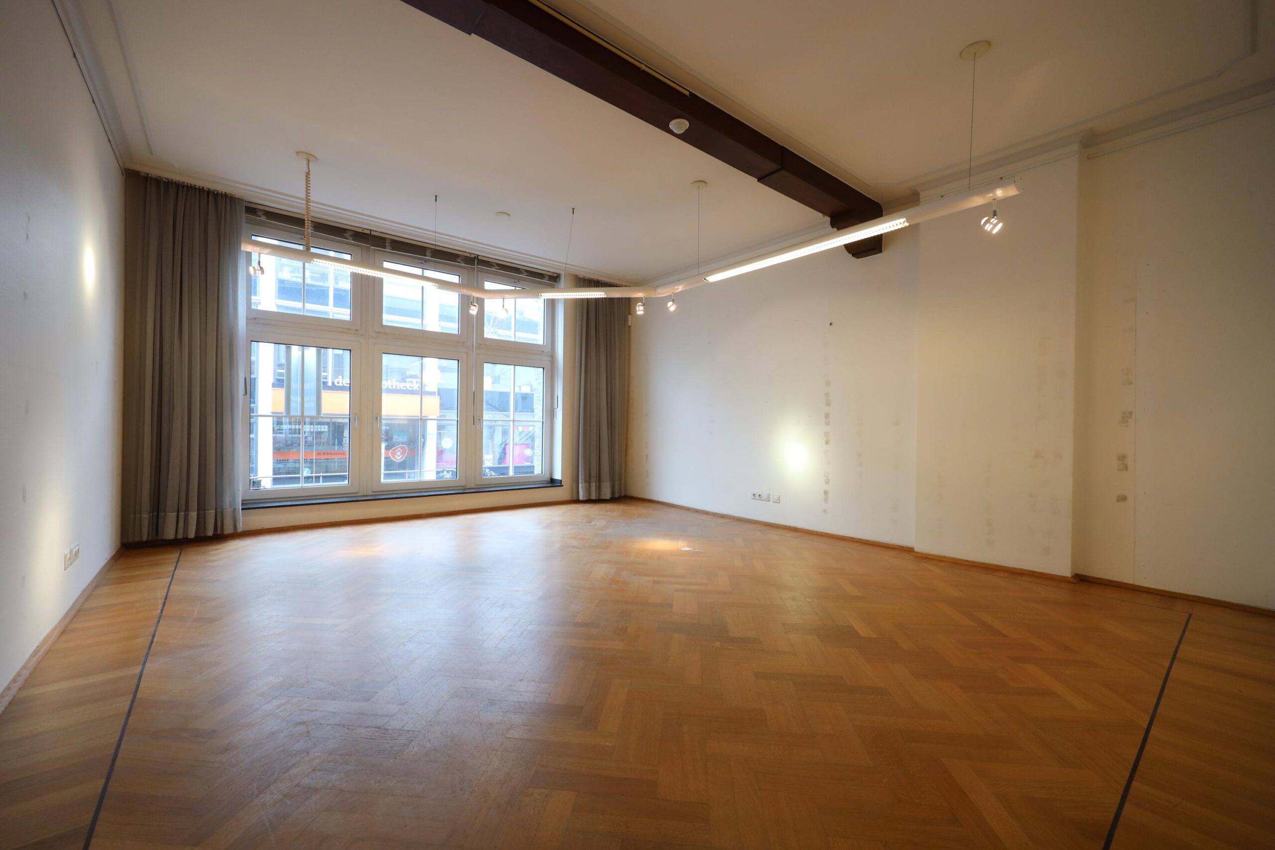 In hartje centrum, tegenover de bibliotheek, ligt deze commerciële ruimte van ca. 110m² op de begane grond.