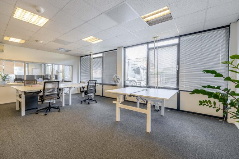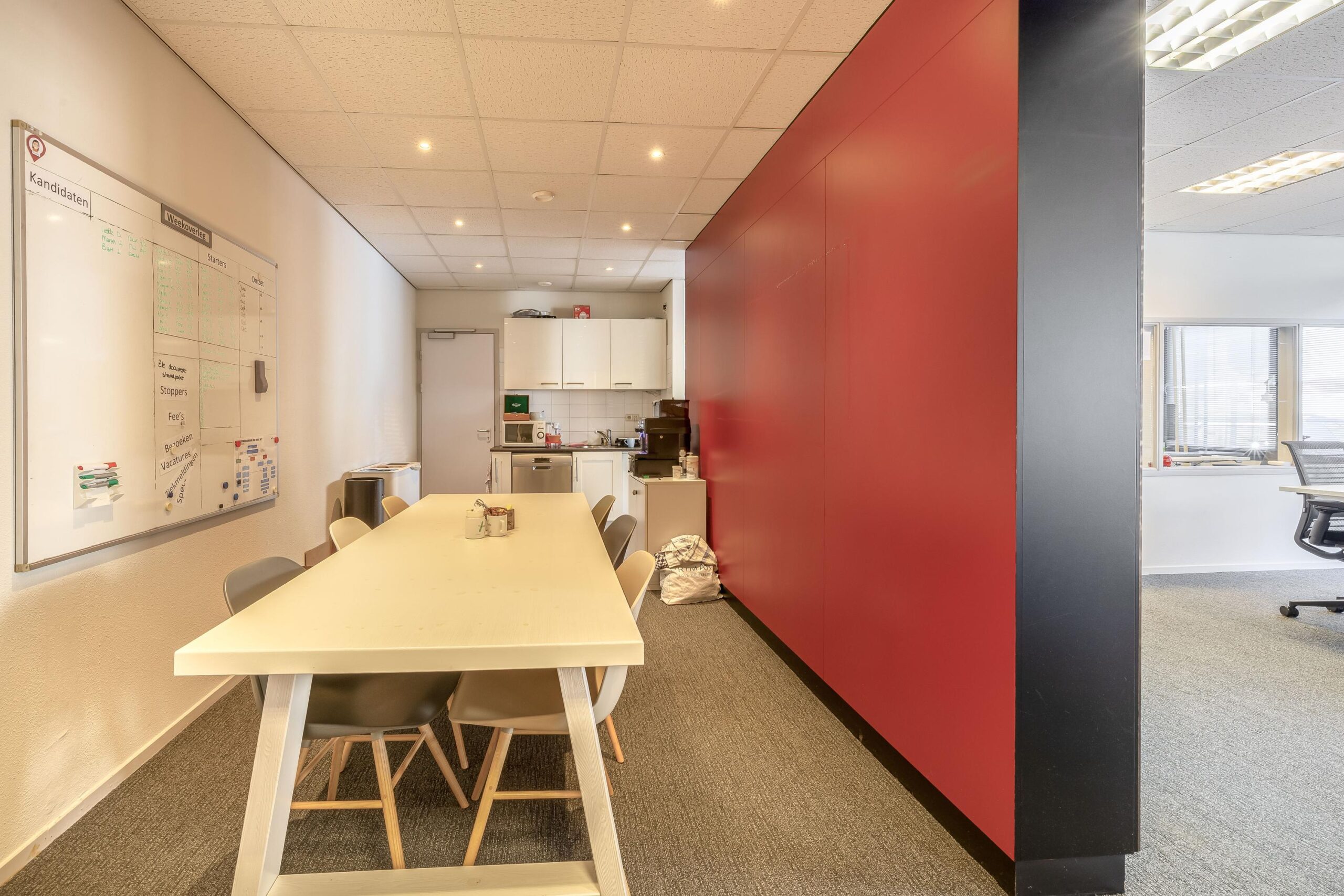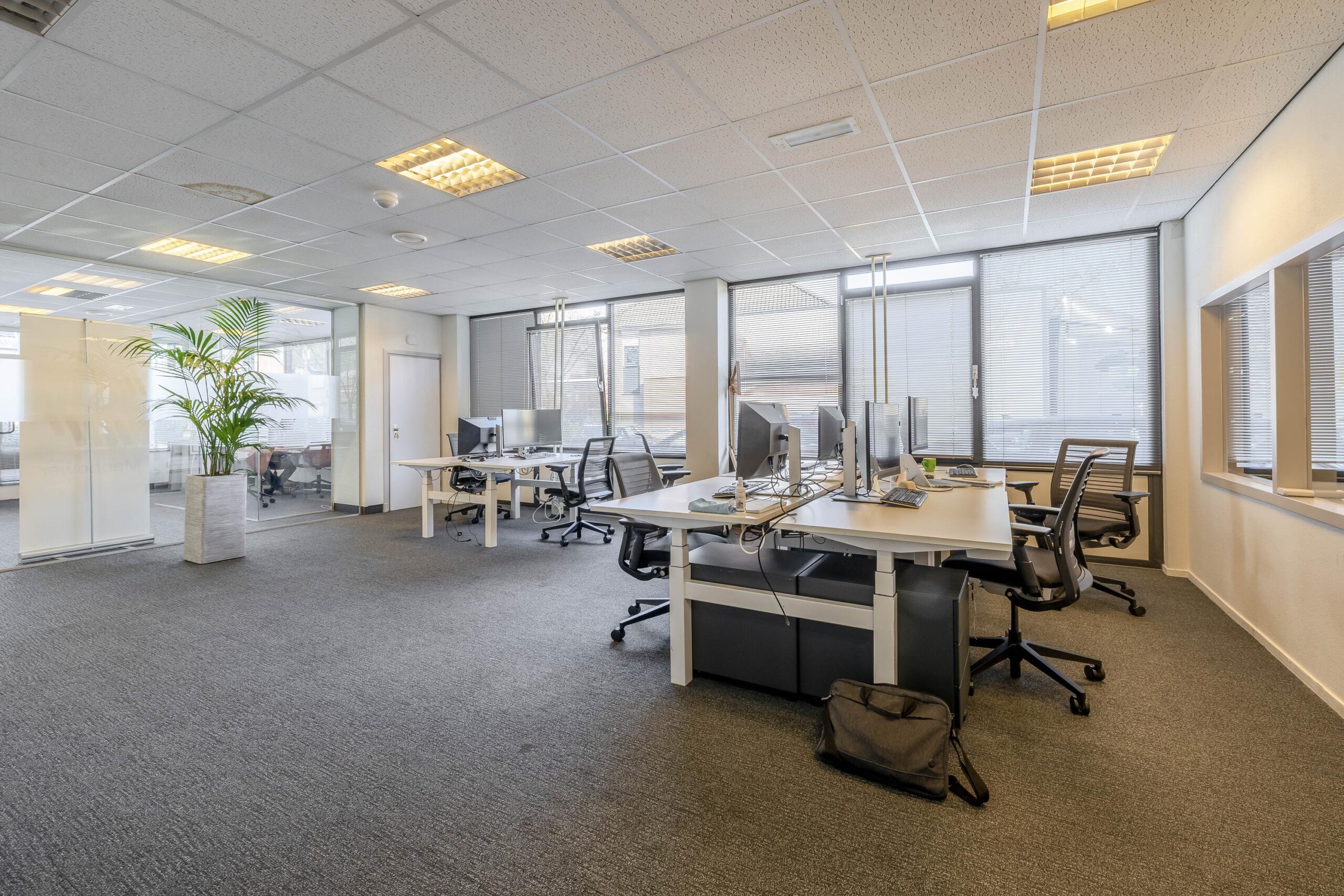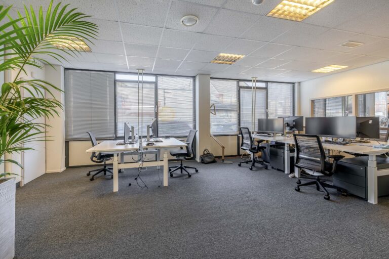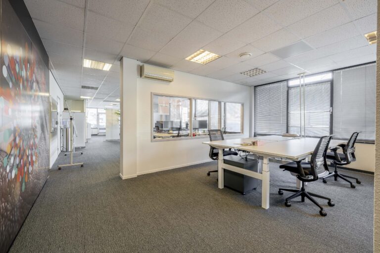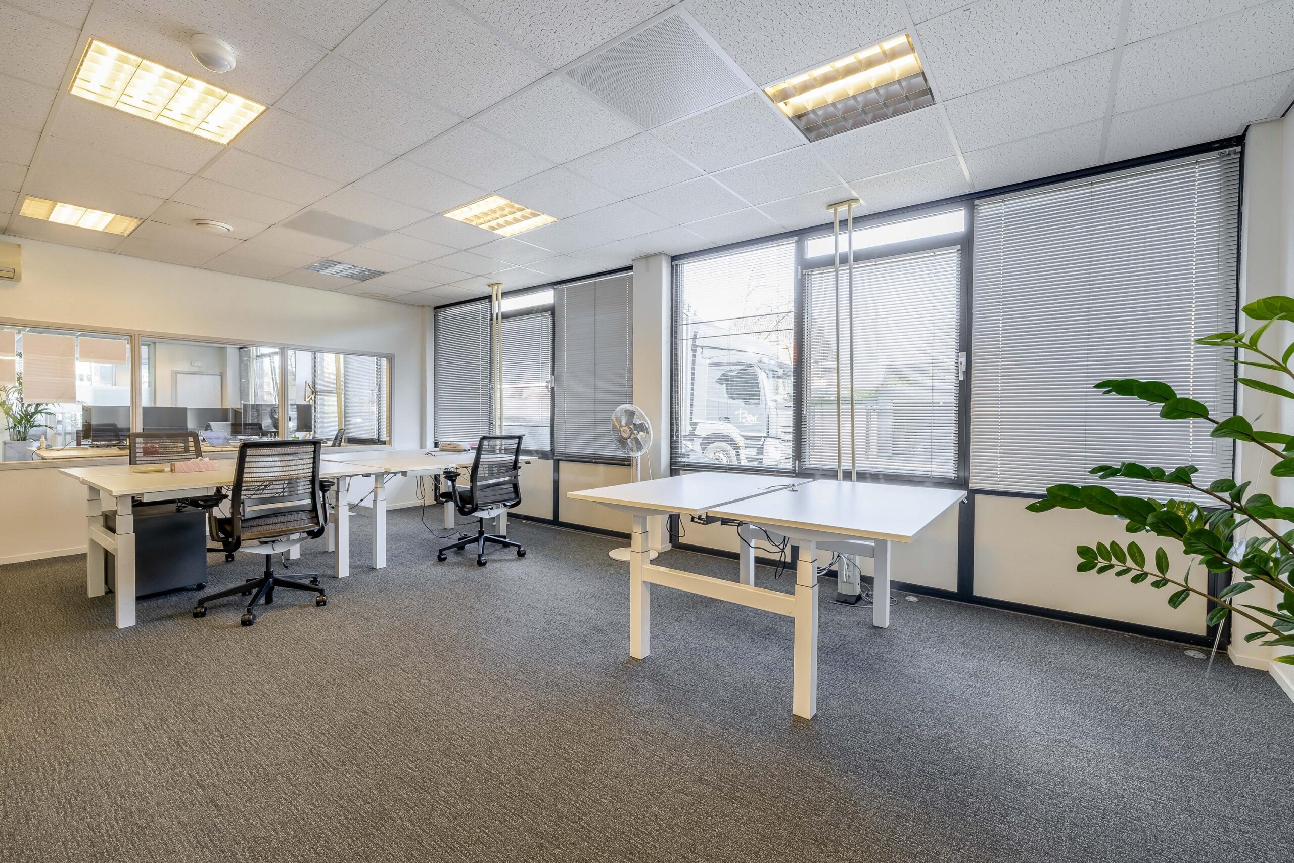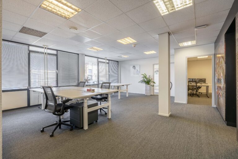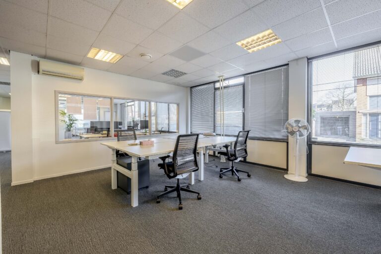 De kantoorruimtes zijn uitgerust met een alarminstallatie, airco-units, verlaagde plafonds met verlichtingsarmaturen. De afgescheiden kantine is uitgerust met een kitchenette.