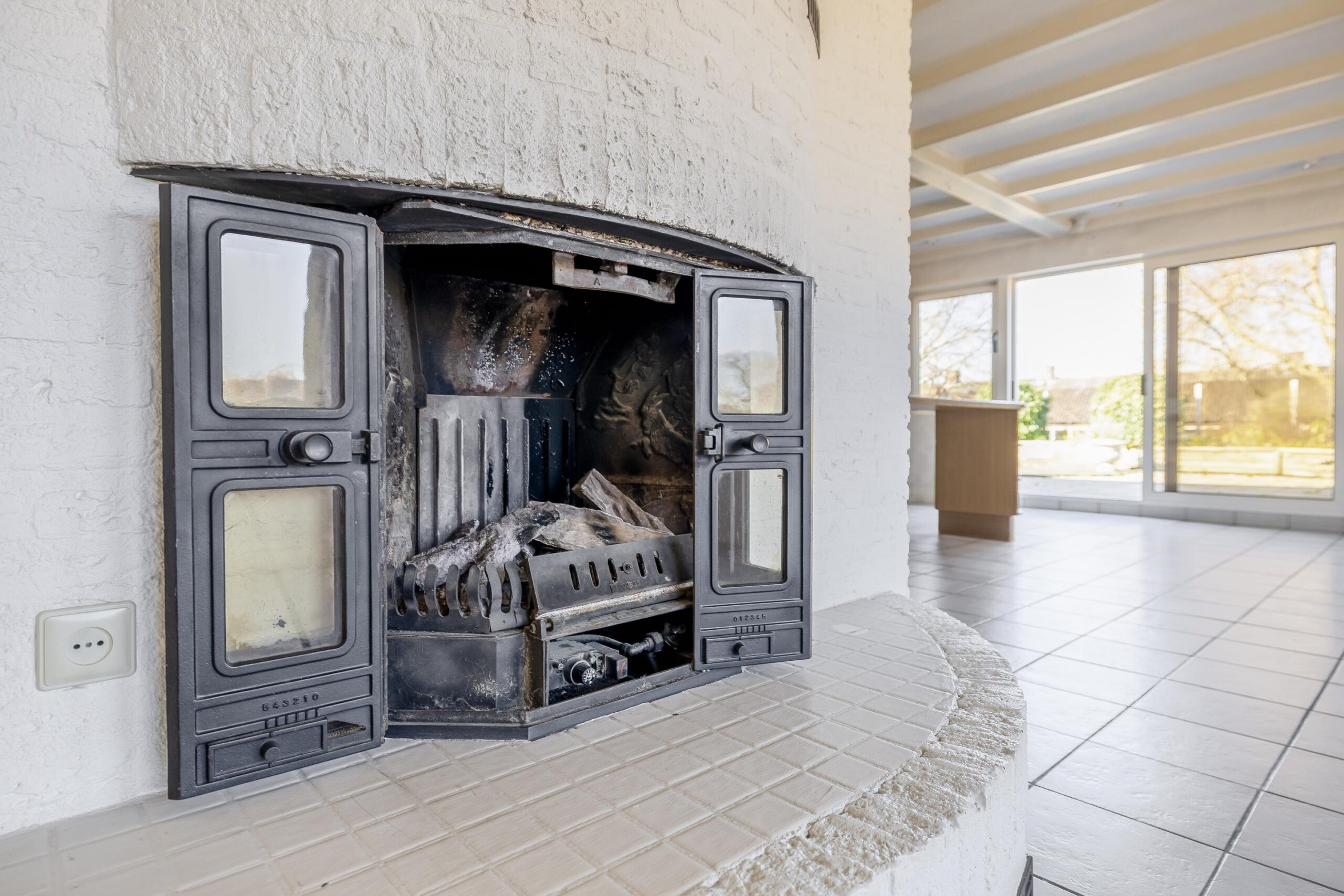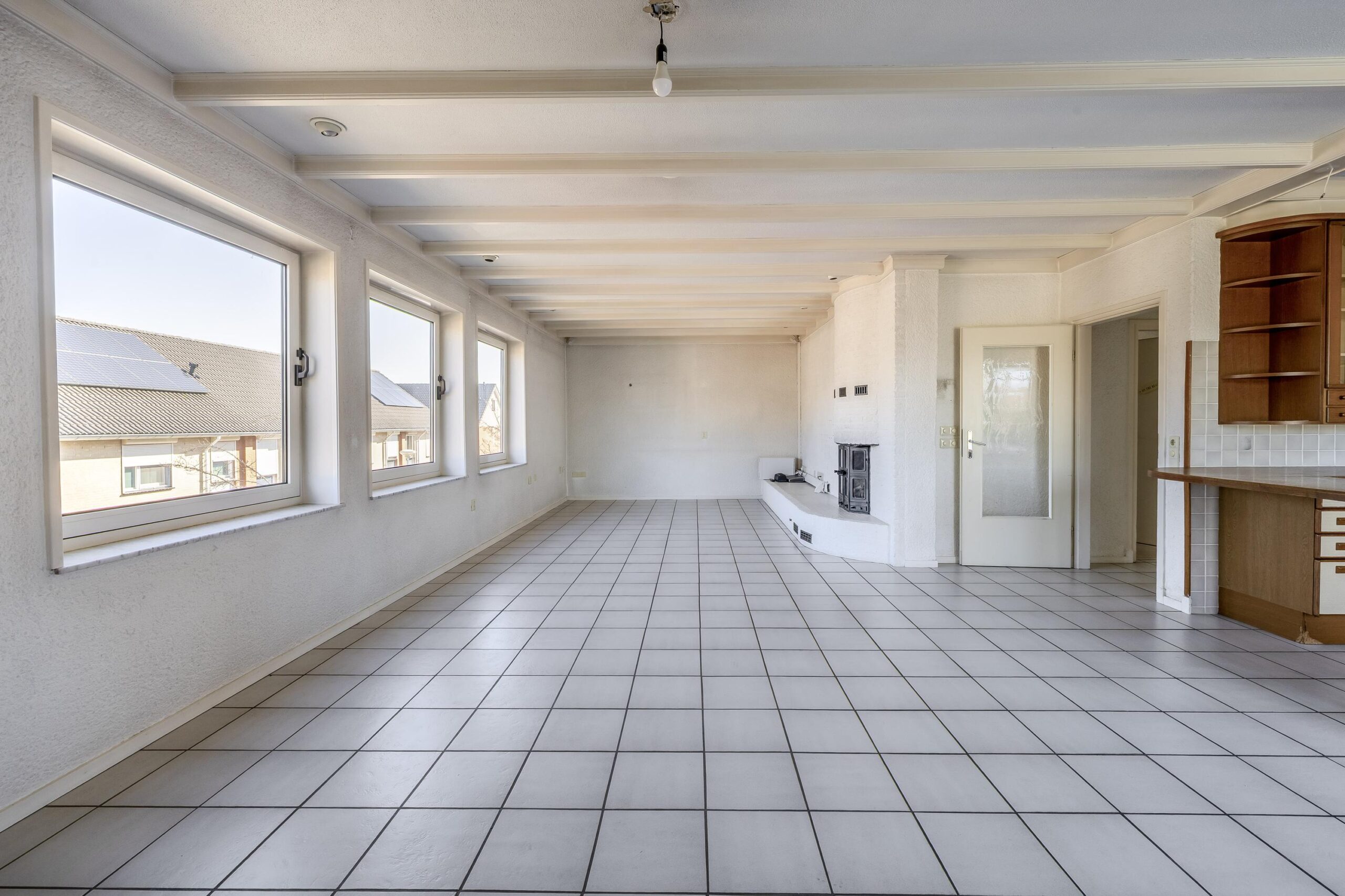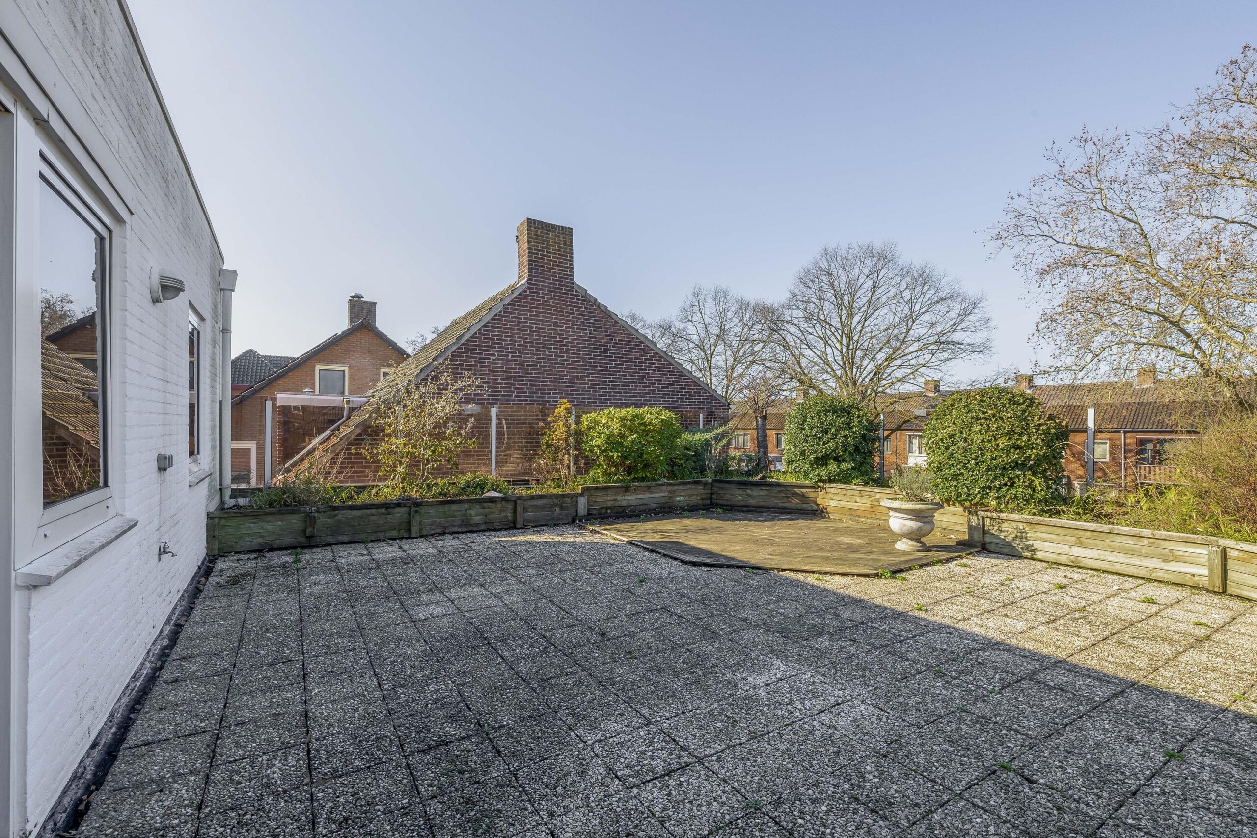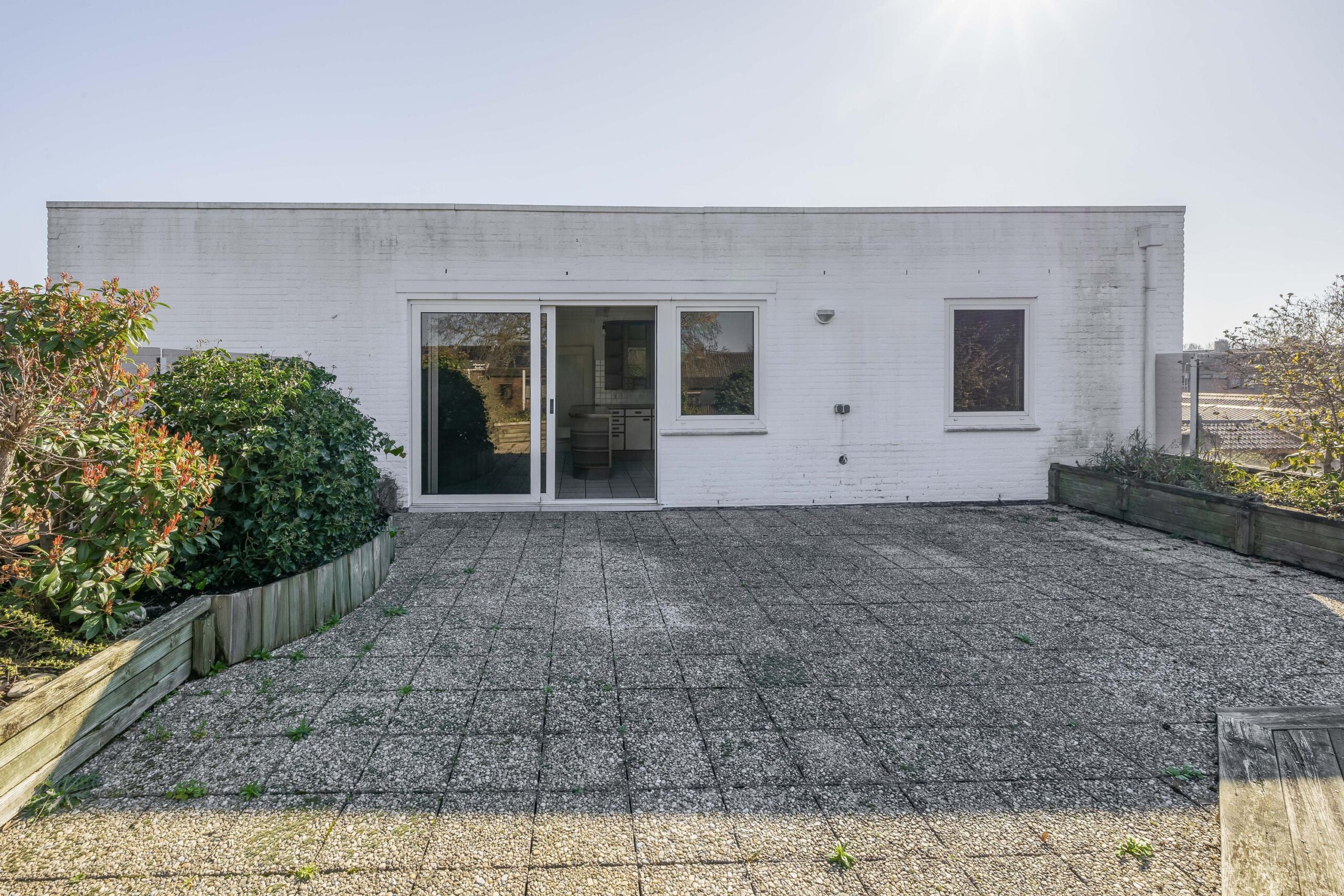 De ruime woonkamer valt direct op door de grote hoeveelheid natuurlijk licht. Dankzij de vloerverwarming en de sfeervolle open haard is het hier het hele jaar door aangenaam vertoeven. Via de schuifdeur in de keuken stap je zo het dakterras op. Met een oppervlakte van circa 68 m² en volop privacy is dit de perfecte plek om te ontspannen of gezellig te genieten met familie en vrienden.