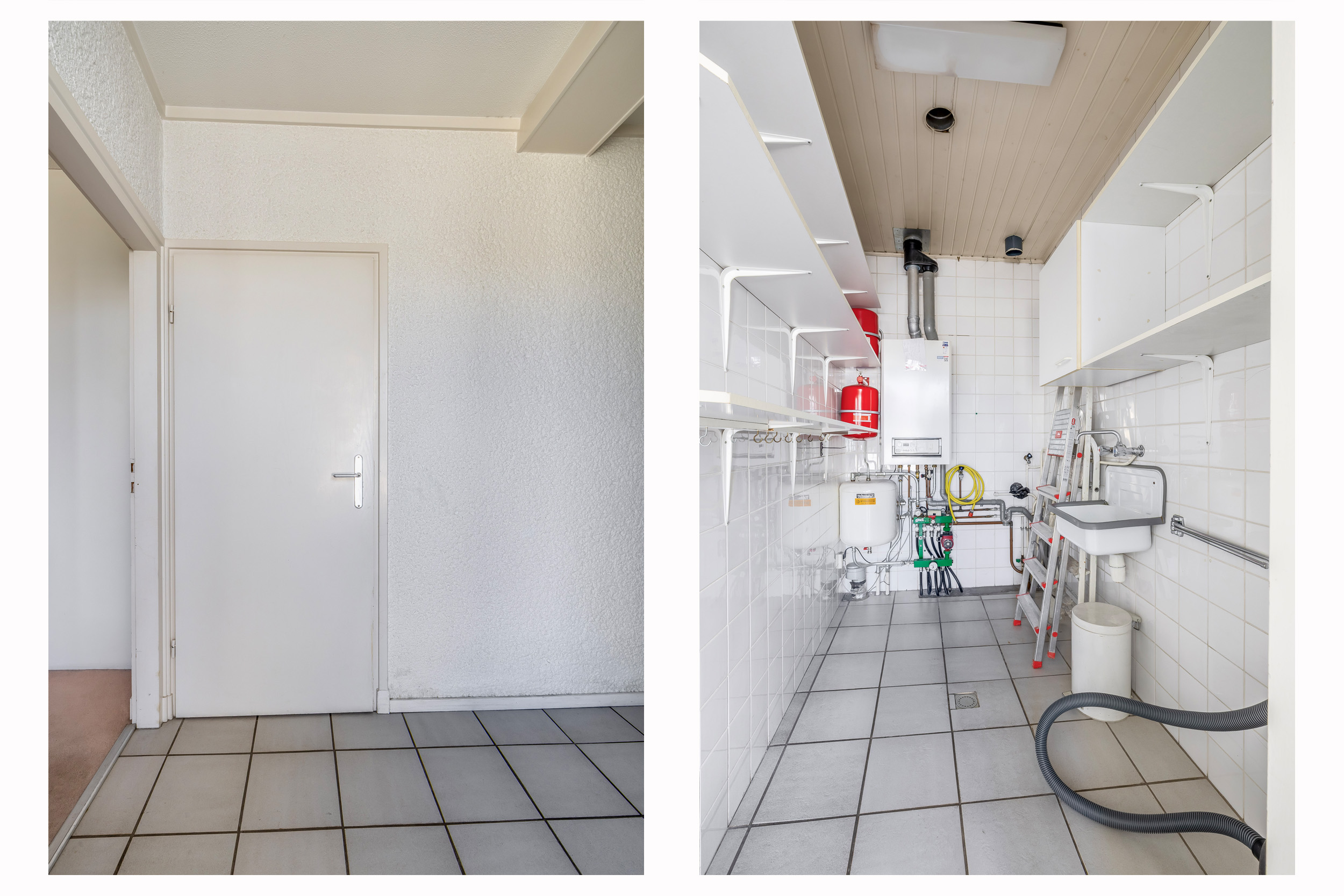 De overloop biedt toegang tot de drie slaapkamers, zeer ruime badkamer, toilet met fonteintje, praktische berging met cv-installatie inclusief aansluiting witgoed en de zeer grote en erg lichte woonkamer.
