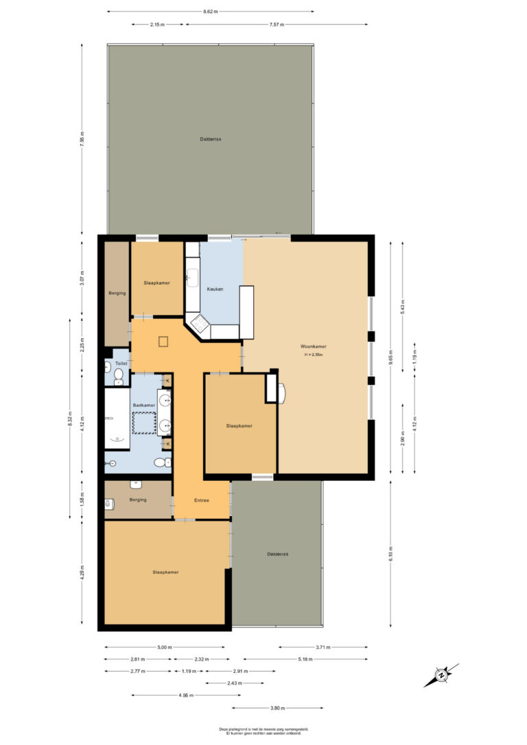 De hoofdslaapkamer van circa 21 m² biedt directe toegang tot een tweede dakterras, gelegen op het noordoosten. Ook de andere 2 slaapkamers zijn prettig van formaat en veelzijdig in gebruik.