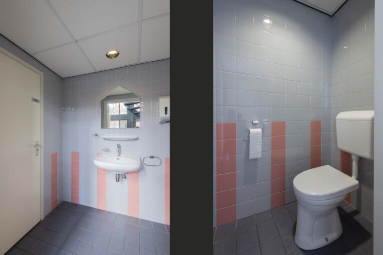 Via een gemeenschappelijke entree met gescheiden toiletgroep te bereiken kantoorunit met pantry v.v. keukenblok met close-in boiler, 2 aparte kantoorruimten waarvan 1 v.v. berging.