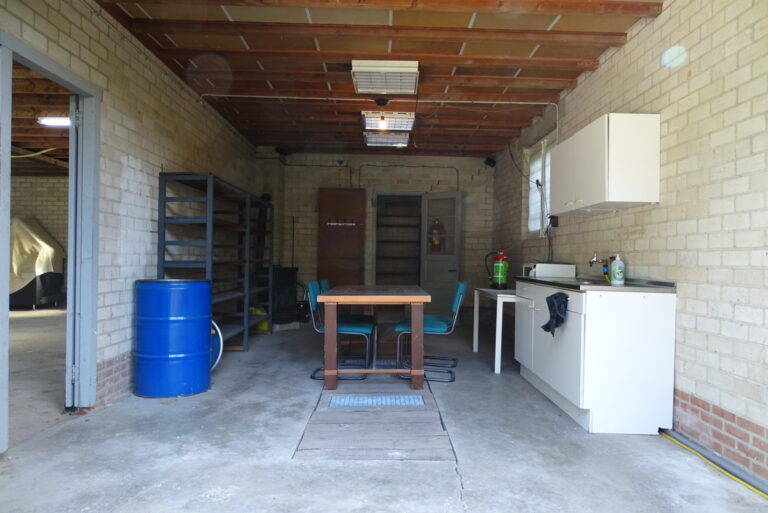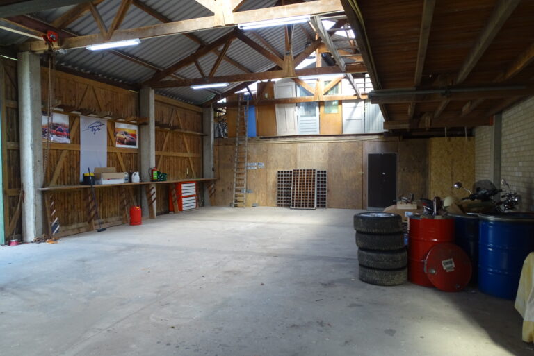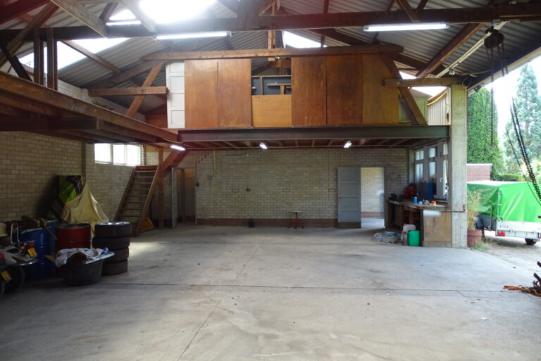 Het dak is geheel vervangen met damwandplaten met anti-condensvilt en is voorzien van eigen voorzieningen zoals elektra. (incl. krachtstroom) In de hal is een betonnen vloer gestort en over twee delen is een verdiepingsvloer gerealiseerd. In de rechter helft is een smeerput aanwezig in een separate werkruimte, tevens een pantry met koud watervoorziening. Door middel van totaal 2 stuks schuifpoorten is er een zeer ruime toegang tot de loods. Alle ruimtes zijn voorzien van LED-armaturen.