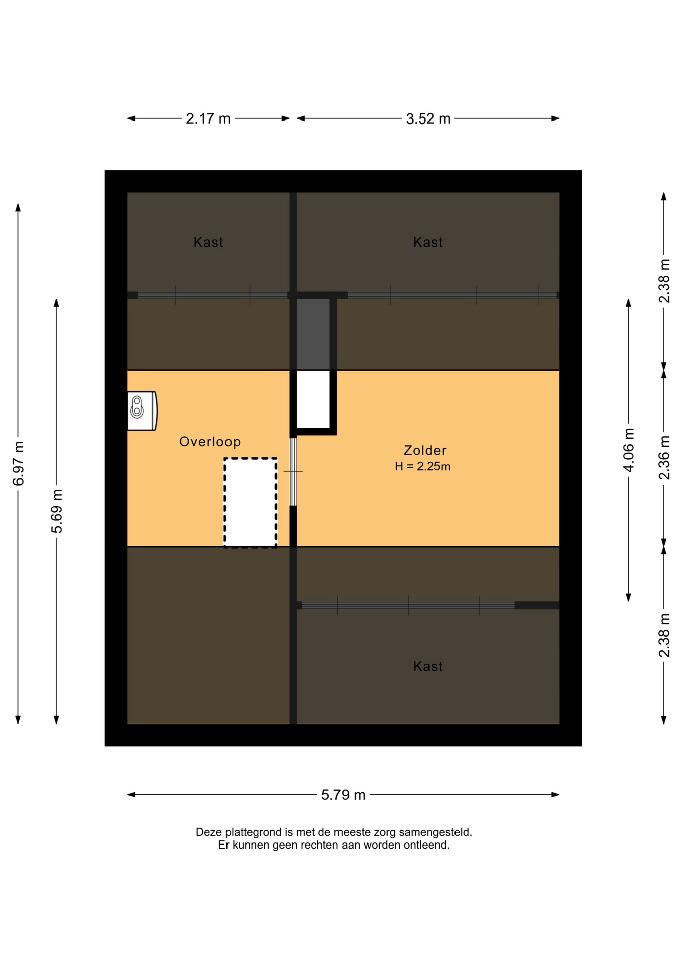 Via de overloop is de bergkast bereikbaar, evenals de zolder via een vlizotrap.