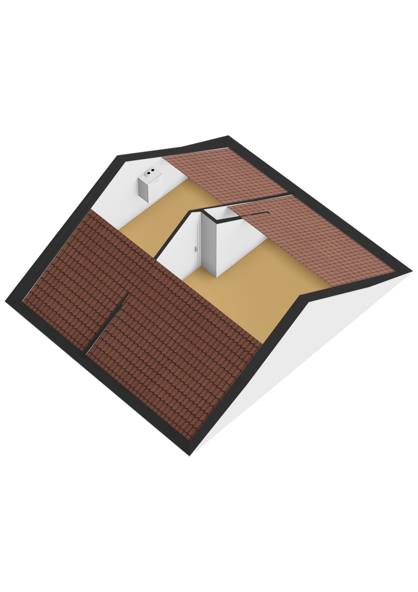 De zolder is keurig afgewerkt, geïsoleerd en voorzien van een dakraam. Hier vind je de cv-ketel en veel handige bergruimte.