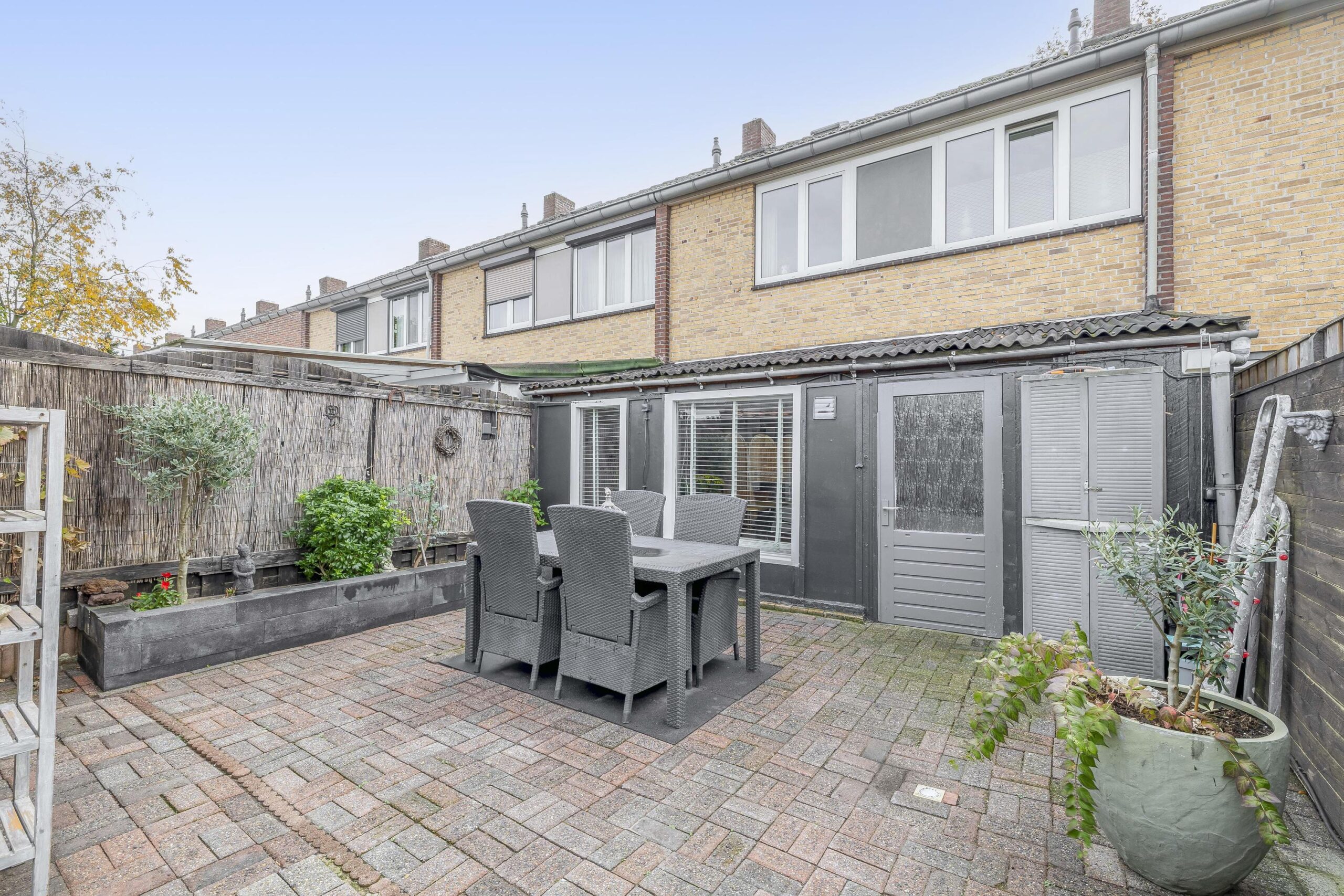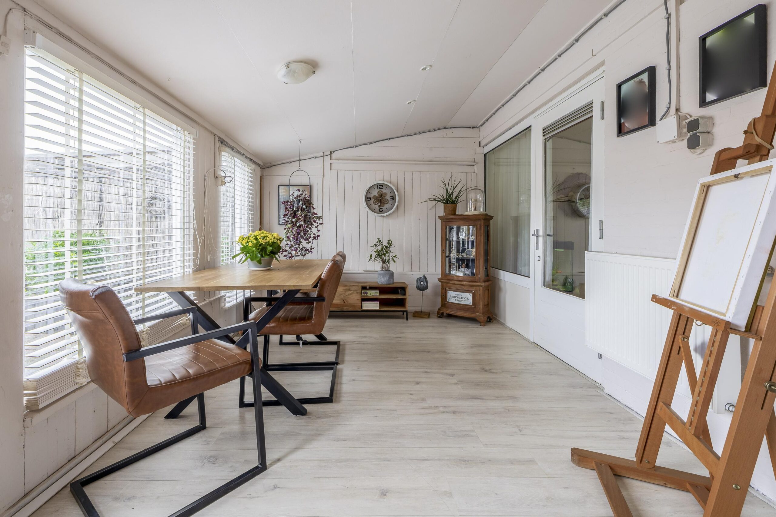 De tuin op het noordwesten is een heerlijke plek om te genieten van lange zomeravonden. Er is een fijn terras en achter in de tuin bevindt zich de voormalige garage, die is omgebouwd tot een salon/praktijkruimte met een eigen ingang. Perfect voor wie aan huis wil werken of een hobbyruimte zoekt! Daarnaast is er nog een aparte bergruimte aanwezig.