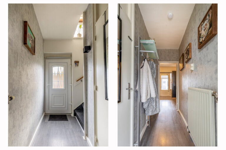 Bij binnenkomst ervaar je direct de fijne sfeer van deze woning. De hal met laminaatvloer biedt toegang tot de gezellige doorzonwoonkamer, het toilet, de kelder en de eerste verdieping.