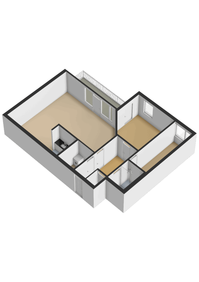 Het appartement heeft twee slaapkamers. De grootste biedt, net als de woonkamer, direct toegang tot het balkon door middel van een loopdeur.