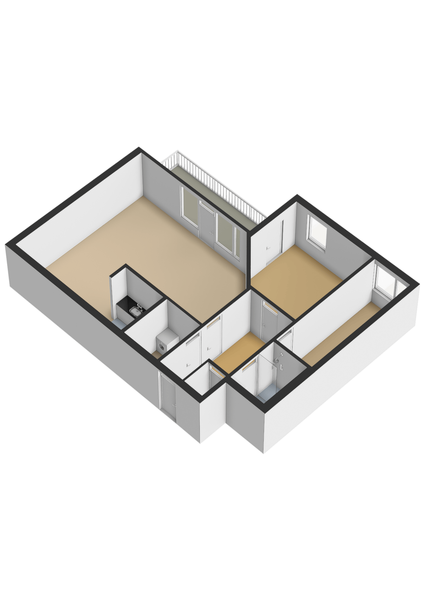 Het appartement heeft twee slaapkamers. De grootste biedt, net als de woonkamer, direct toegang tot het balkon door middel van een loopdeur.
