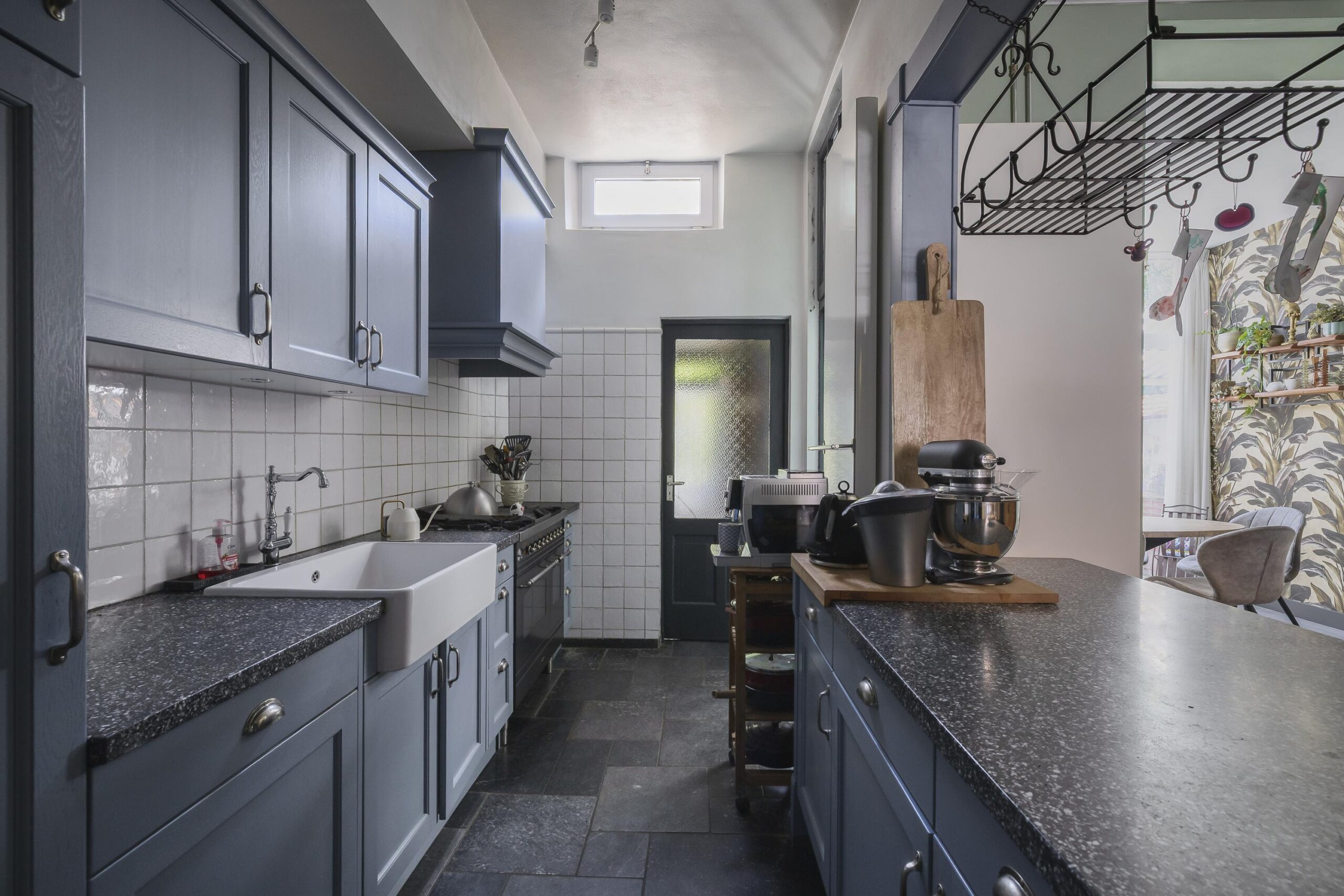 In de bijkeuken (ca. 5m²) bevindt zich de witgoedaansluiting. Een loopdeur biedt toegang tot de achtertuin.