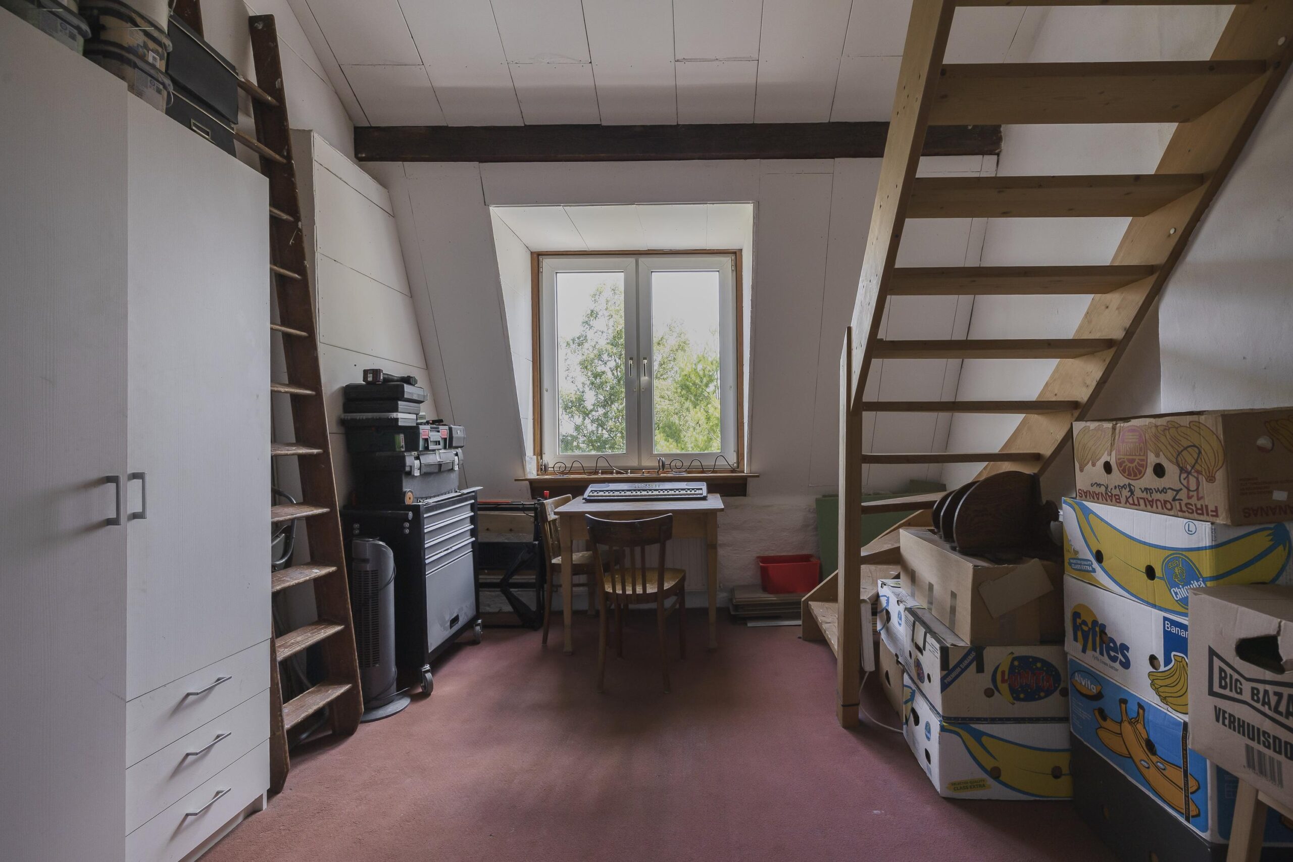 De grote vliering (ca. 17m²) is bereikbaar vanuit een van de slaapkamers door middel van een vaste trap. De vliering biedt veel bergruimte en is voorzien van twee dakramen. In de berging bevindt zich de cv-ketel. Daarnaast is hier ook de omvormer van de zonnepanelen aanwezig.