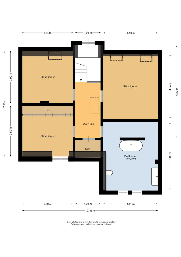 Alle slaapkamers zijn zeer ruim (ca. 14,5m², 21m² en 21m²) door de hoge plafonds. Daarnaast zijn er nog overal de originele ornamenten aanwezig. De zeer ruime badkamer (ca. 15m²) heeft een vrijstaand ligbad, royale inloopdouche en wastafel. vanuit de badkamer is er een doorgang naar een van de slaapkamers.