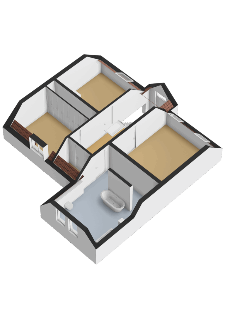 Alle slaapkamers zijn zeer ruim (ca. 14m², 15m² en 20m²). Een van de slaapkamers is voorzien van een hoogwaardige inbouwkast met automatische verlichting. De badkamer is royaal (ca. 21m²). Er zijn een ligbad, royale inloopdouche, wastafel en toilet aanwezig.