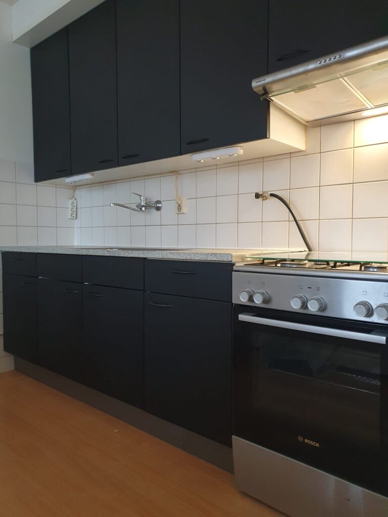 Entree/hal met bergkast en betegeld toilet met fonteintje. Royale woonkamer met half open keuken. De keuken is voorzien van een afzuigkap en gasfornuis. Er is nog een losse vaatwasser aanwezig. Huurder mag deze gebruiken. Alle vervangings- reparatie en onderhoudskosten zijn voor rekening van huurder. Tussen de woonkamer en de keuken staat een barretje welke een leuke functie kan vervullen als bijvoorbeeld ontbijtbarretje. Via de woonkamer is tevens het balkon bereikbaar waar u een mooi uitzicht heeft op het woonerf.