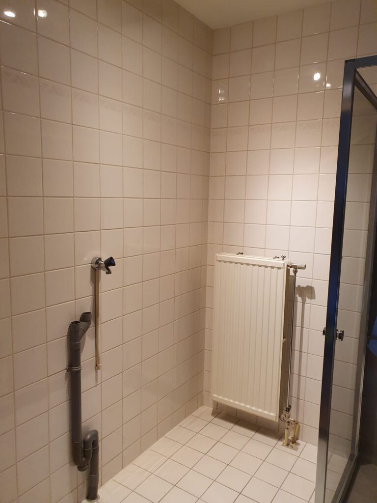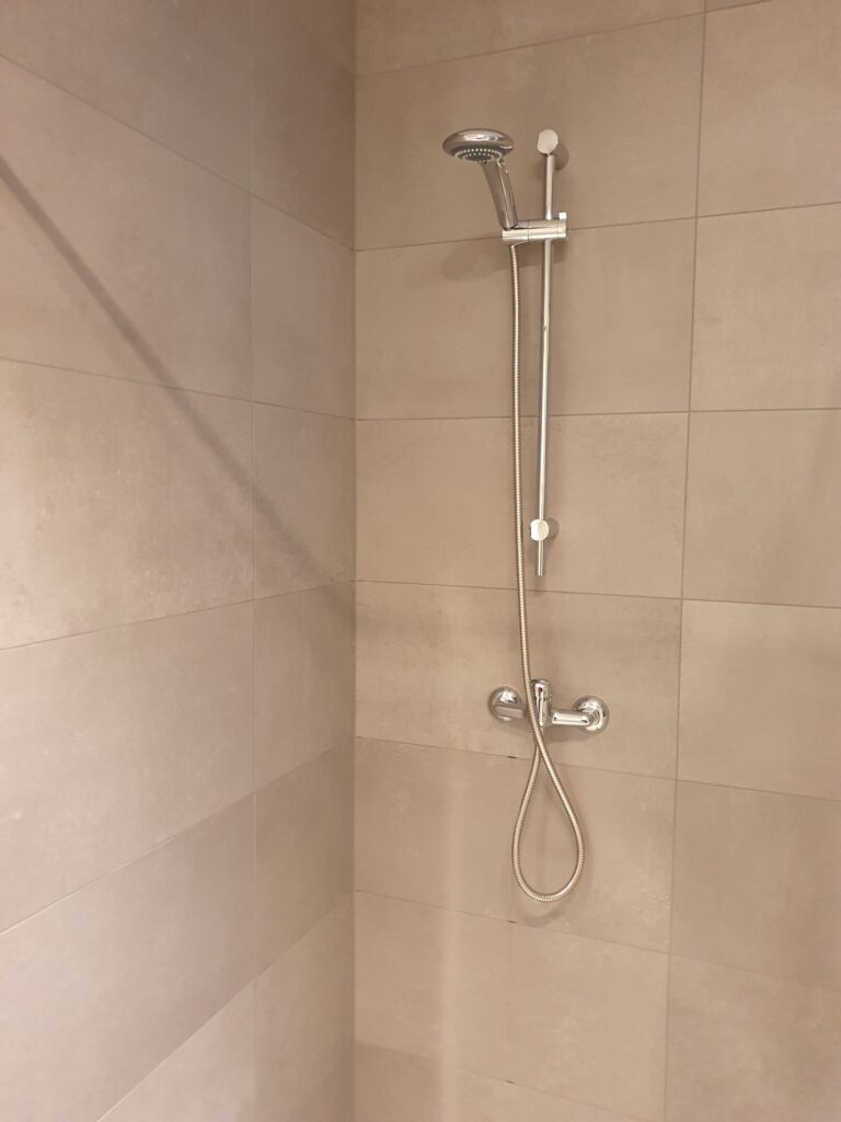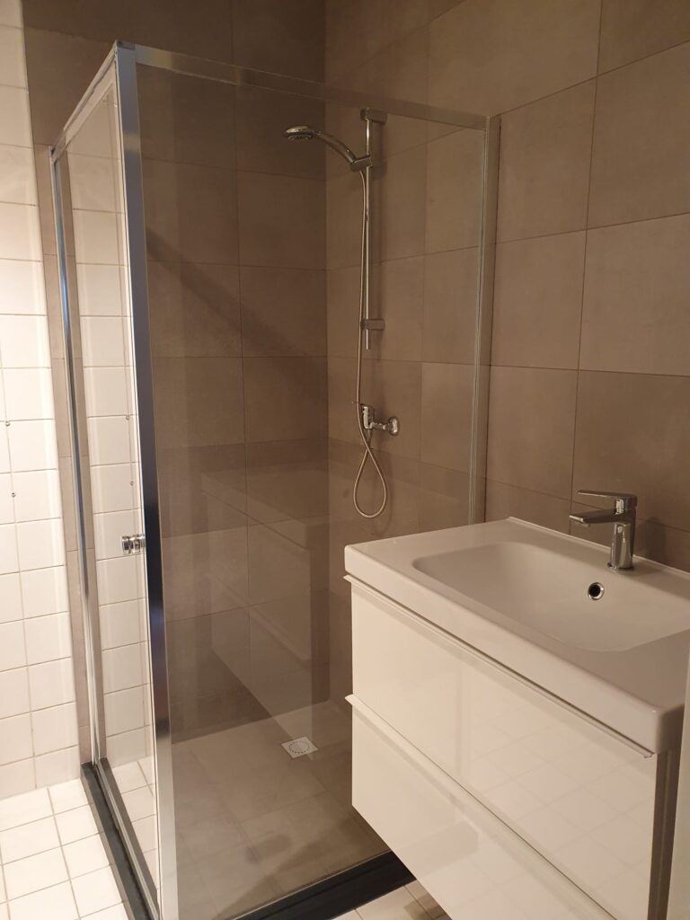 Middels de hal zijn de slaapkamer en de badkamer bereikbaar. De badkamer is in 2023 grotendeels vernieuwd en beschikt over een inloopdouche en wastafel met meubel.