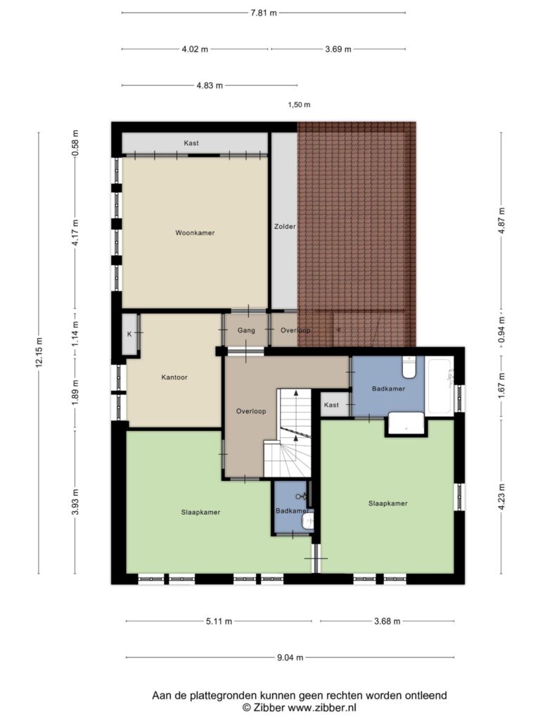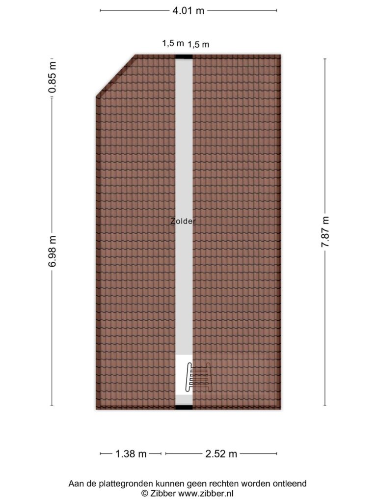Vliering bereikbaar via mangat vanuit de 2de verdieping.