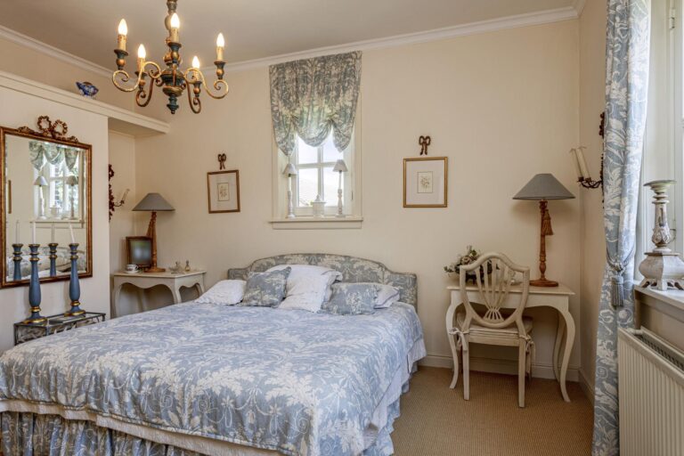 De slaapkamer (ca. 16,5m²) is voorzien van een houten vloer, lambrisering en radiatorafwerking. Oorspronkelijk zijn dit twee kamers.