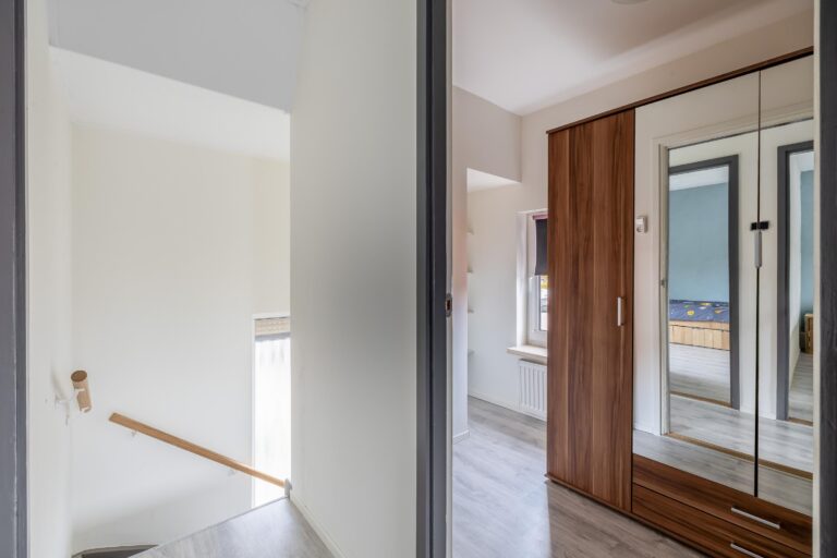 De overloop en drie slaapkamers zijn voorzien van een laminaatvloer.