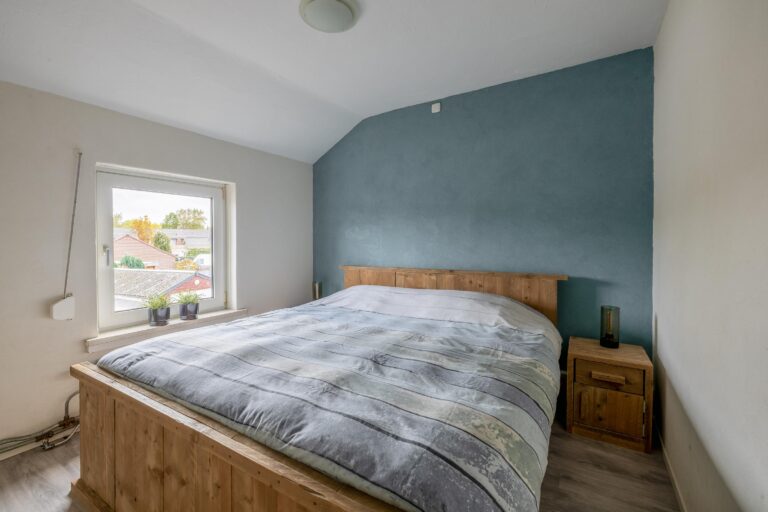 De slaapkamer aan de achterzijde is voorzien van een grote muurkast. Twee slapakamers zijn voorzien van rolluiken.