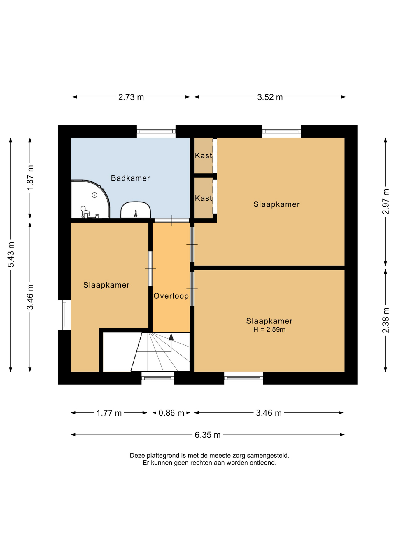 De slaapkamer aan de achterzijde is voorzien van een grote muurkast. Twee slapakamers zijn voorzien van rolluiken.