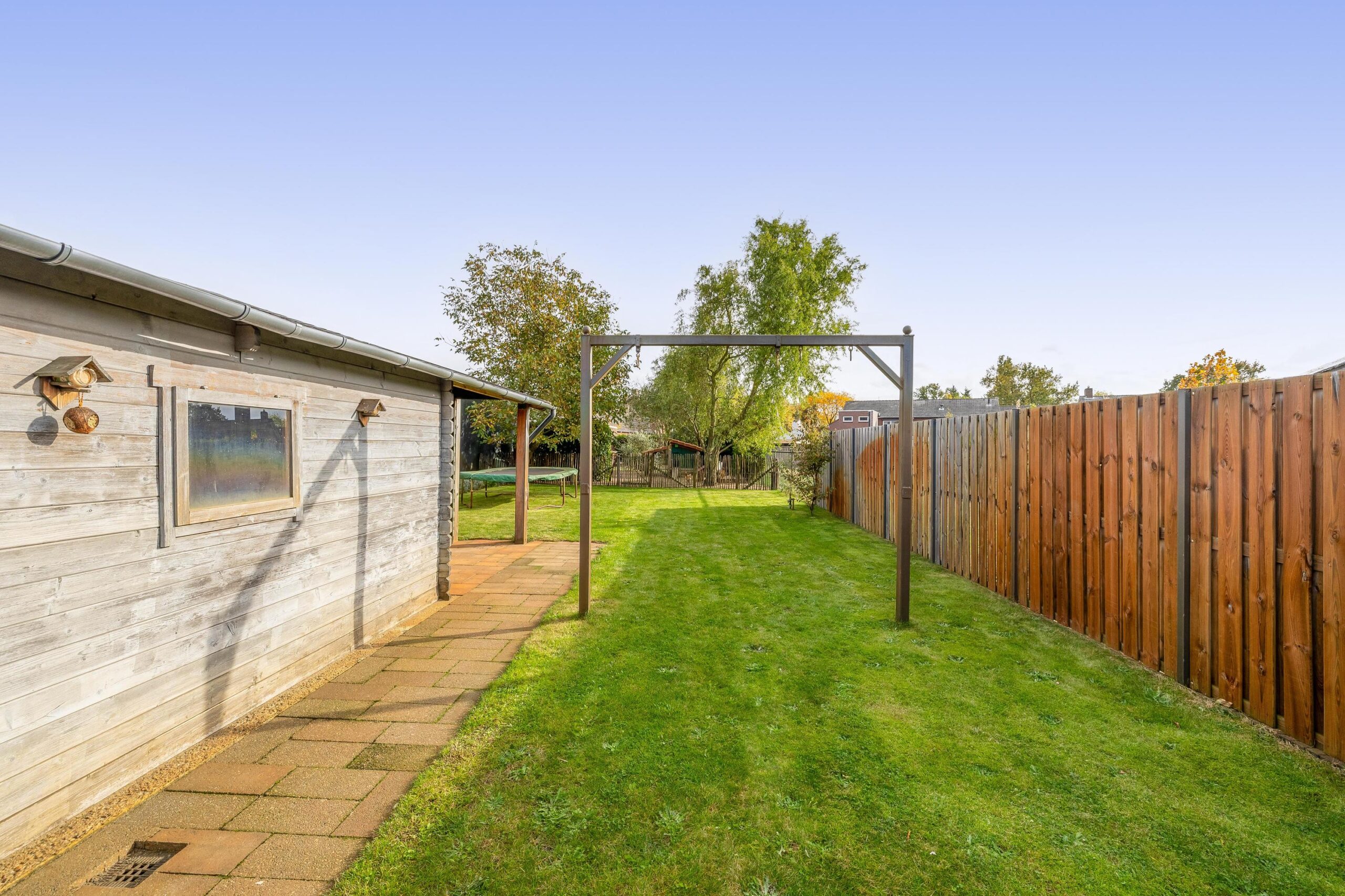 De achtertuin is zeer diep en volledig omheind. Vanuit de eigen oprit biedt een brede poort vrije toegang tot de tuin. Onder de overkapping (2024) is elektra aanwezig. Tevens is er een stroompunt voor eventuele heaters.