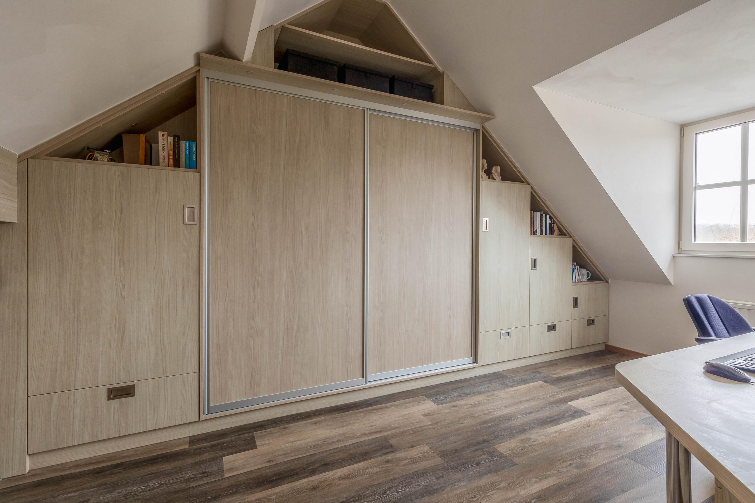De zolder is bereikbaar door middel van een vlizotrap. Hier zijn de omvormer van de zonnepanelen en cv-ketel aanwezig. De dakramen zorgen voor daglicht.