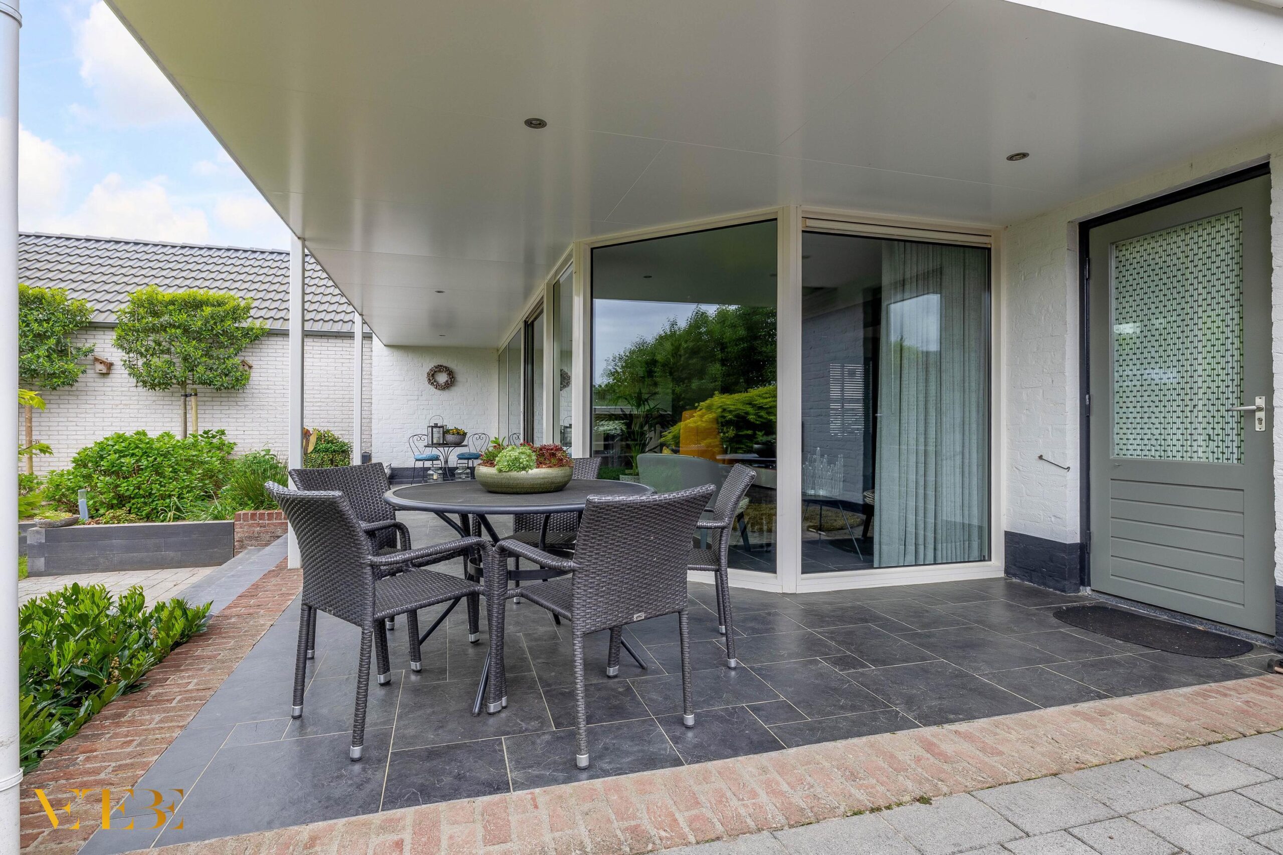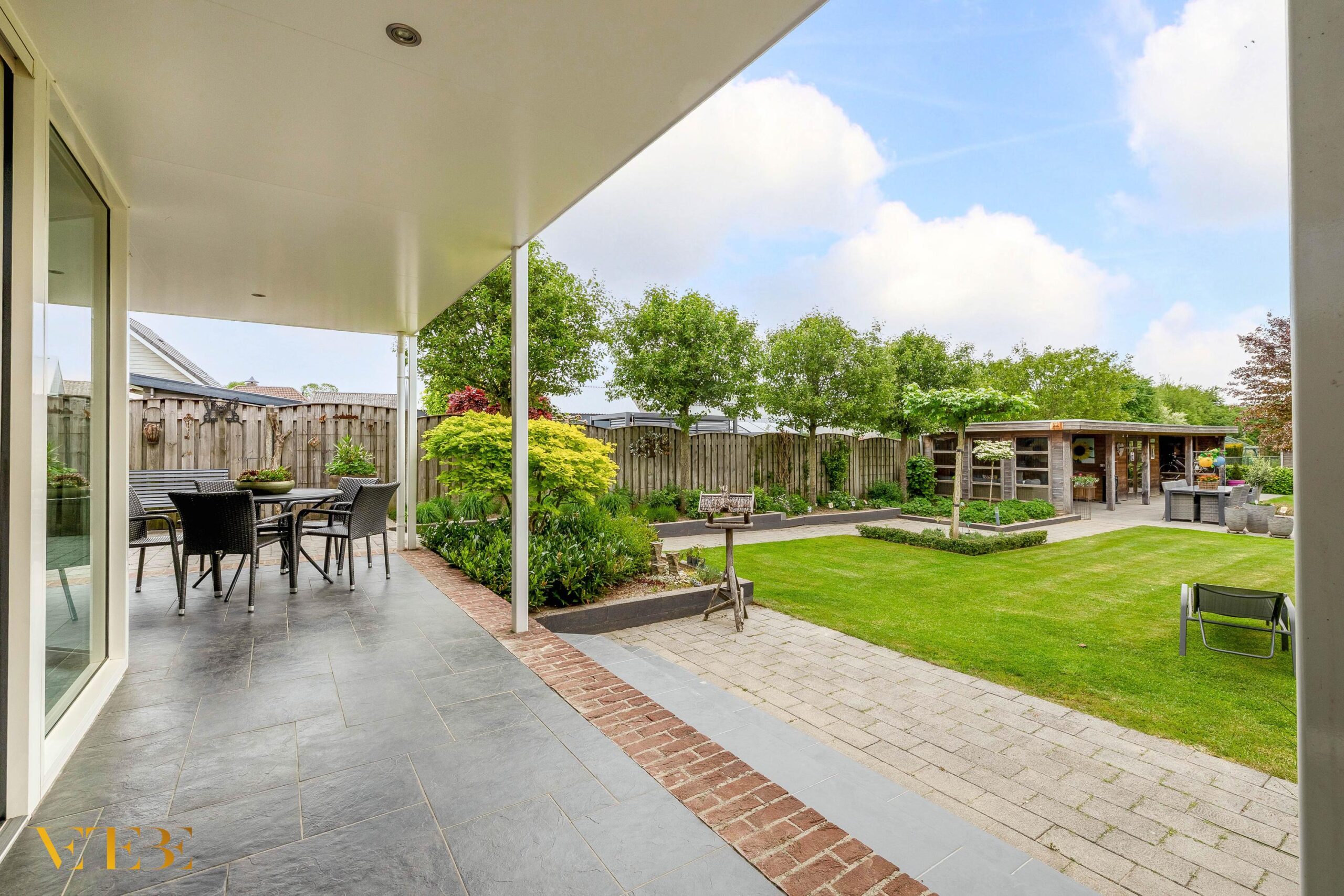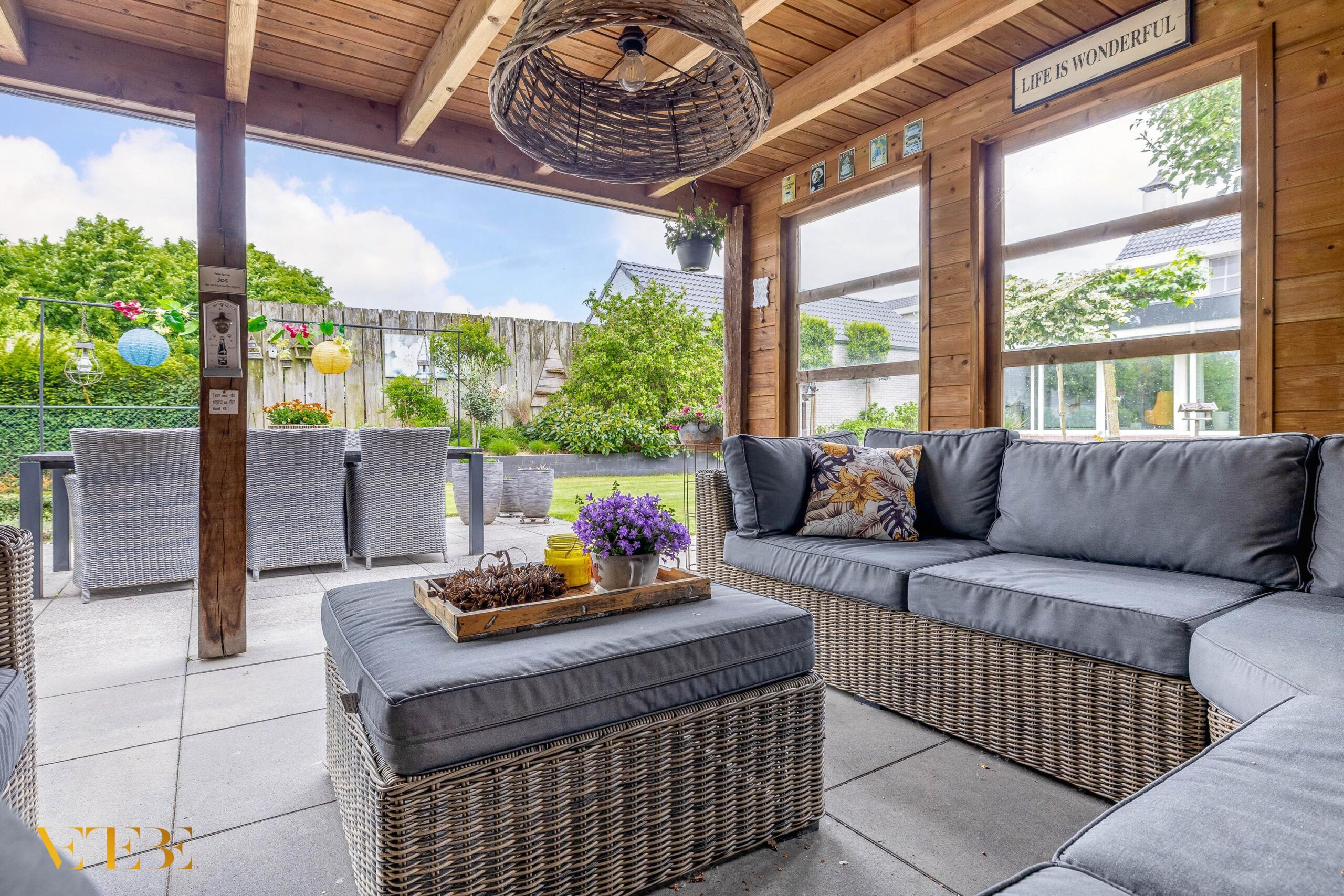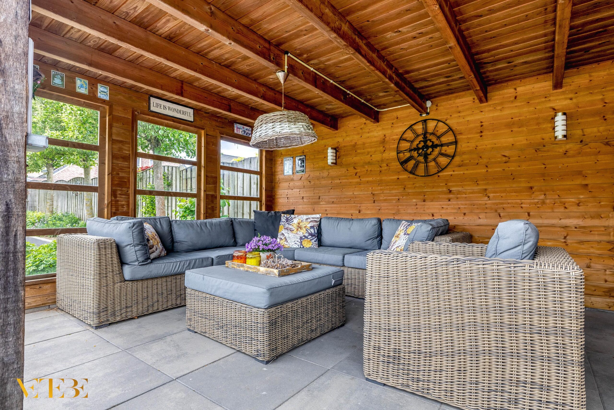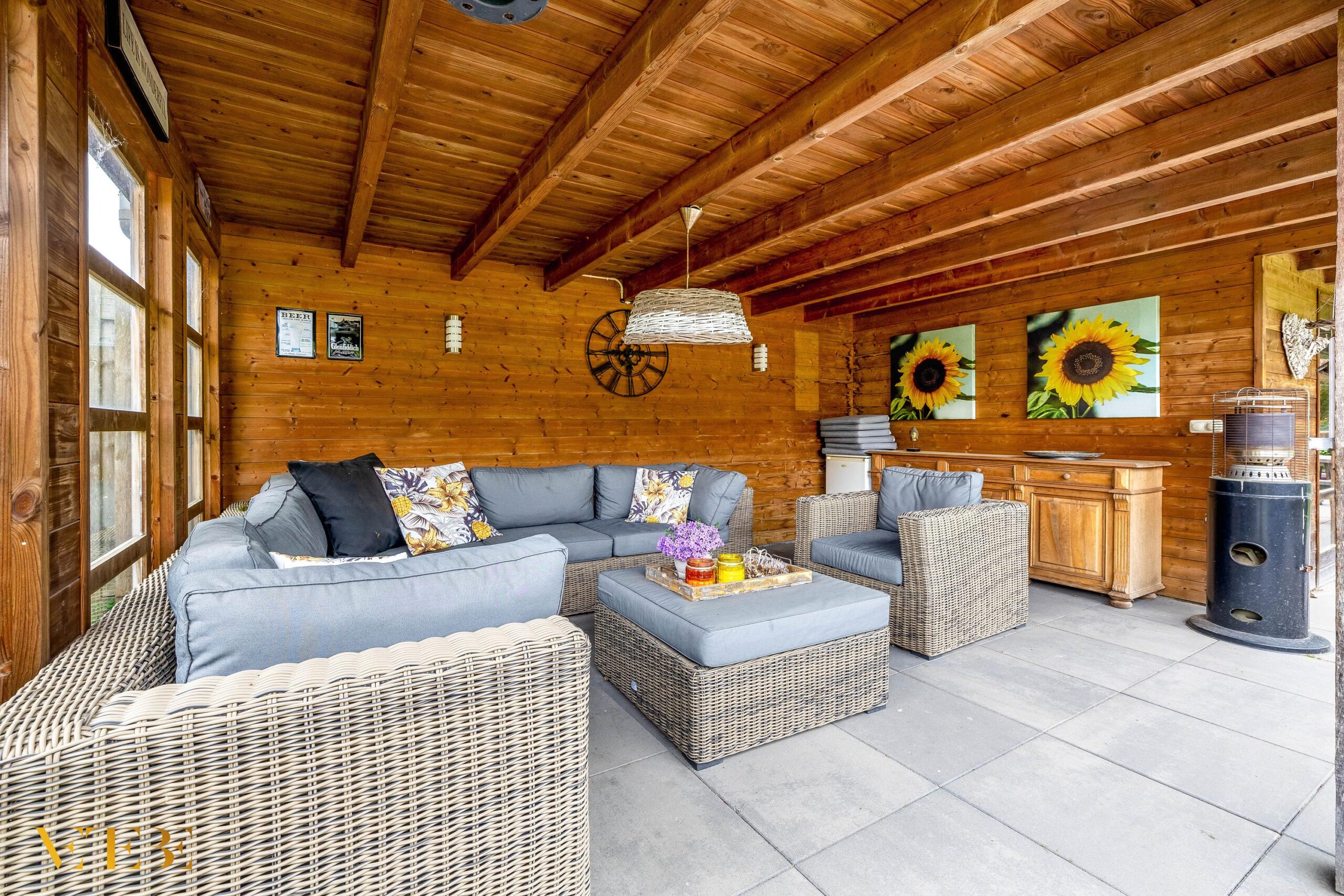 De grote overkapping aan de woning (ca. 23m²) is voorzien van elektra. Halverwege staat een groot houten tuinhuis met 2 open lounge gedeeltes (ca. 51m² in totaal) met elektra.