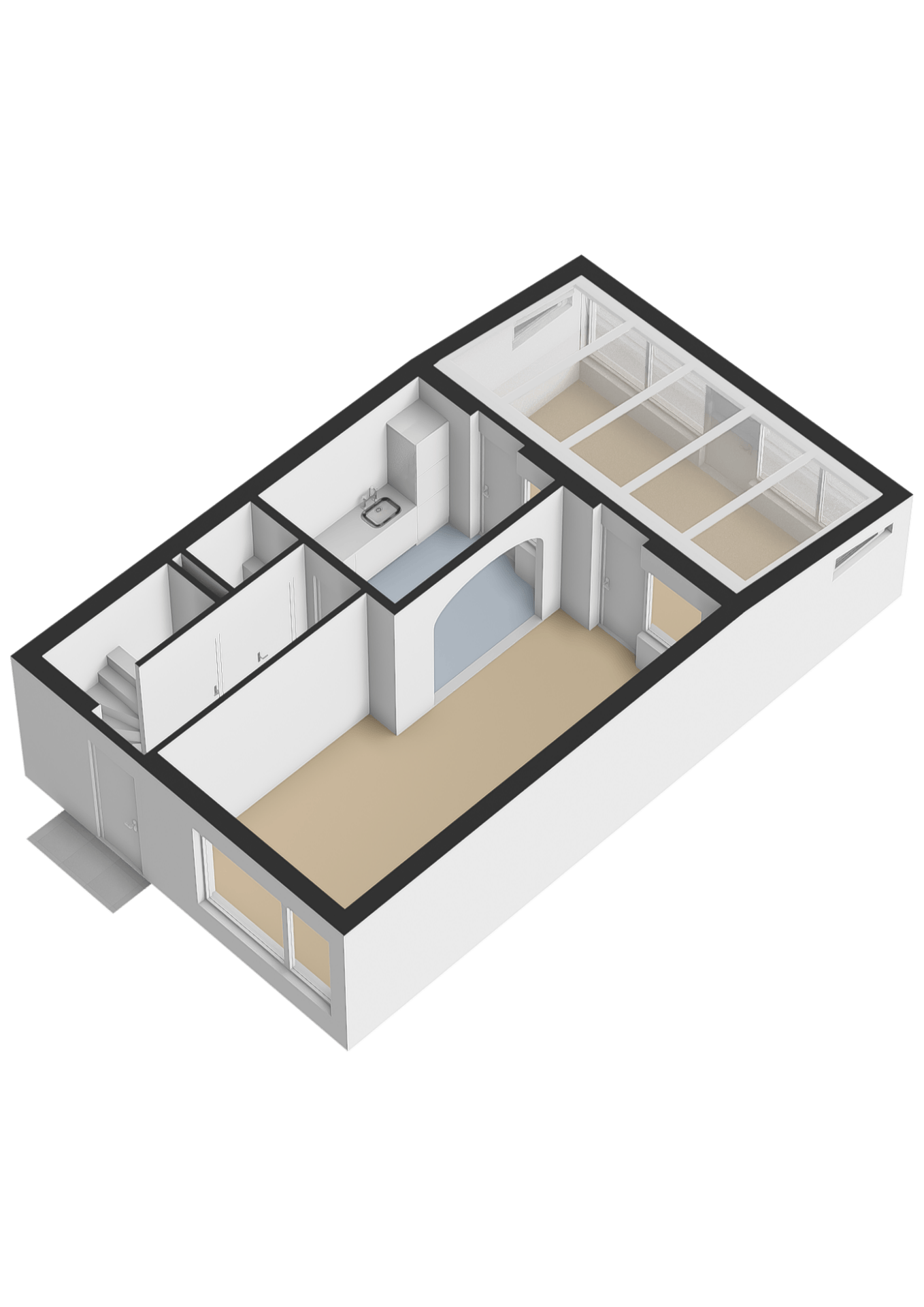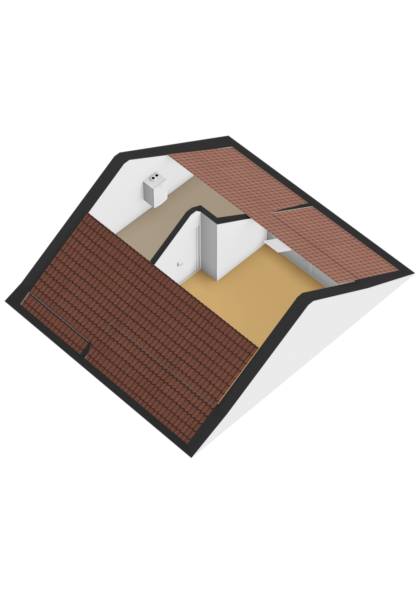 De 2de verdieping is een ruime zolderkamer met een klein dakraam, vloerbedekking en veel bergruimte. In de aparte berging is de cv-ketel aanwezig.