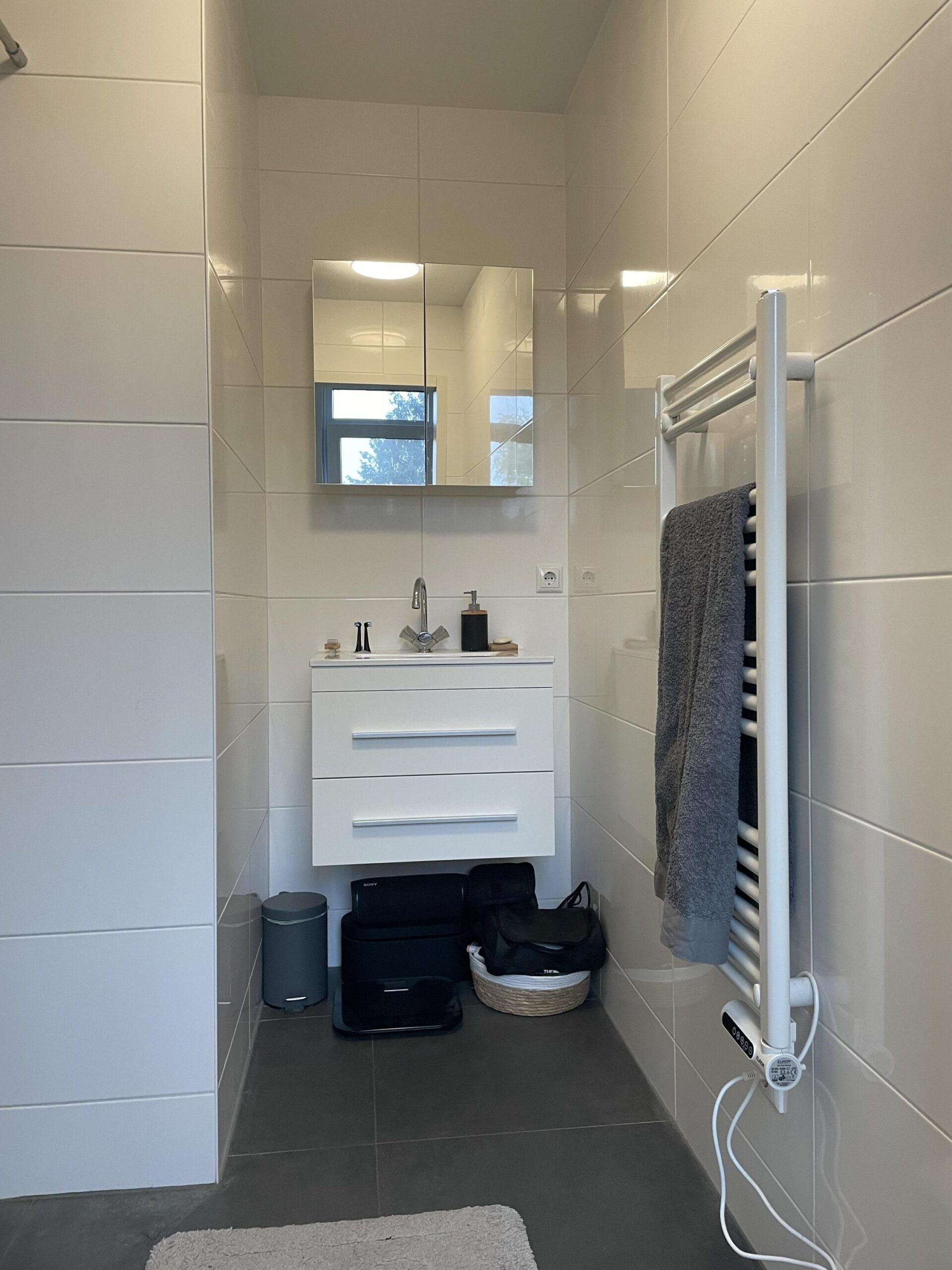 Het appartement beschikt over 1 slaapkamer. Geheel betegelde badkamer voorzien van inloopdouche en wastafel met meubel.