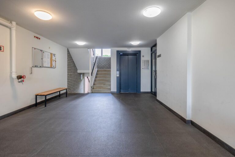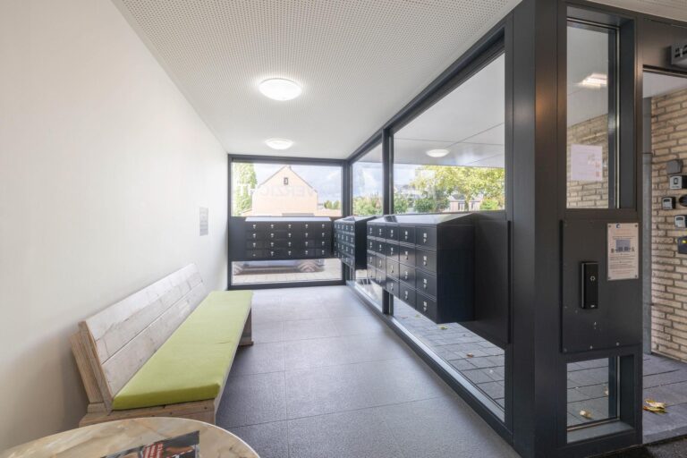 Centrale entree met beltableau, trappenhuis en lift. Een zeer nette ontvangsthal die goed bereikbaar is. Aan de voorzijde van het complex is voldoende parkeergelegenheid.