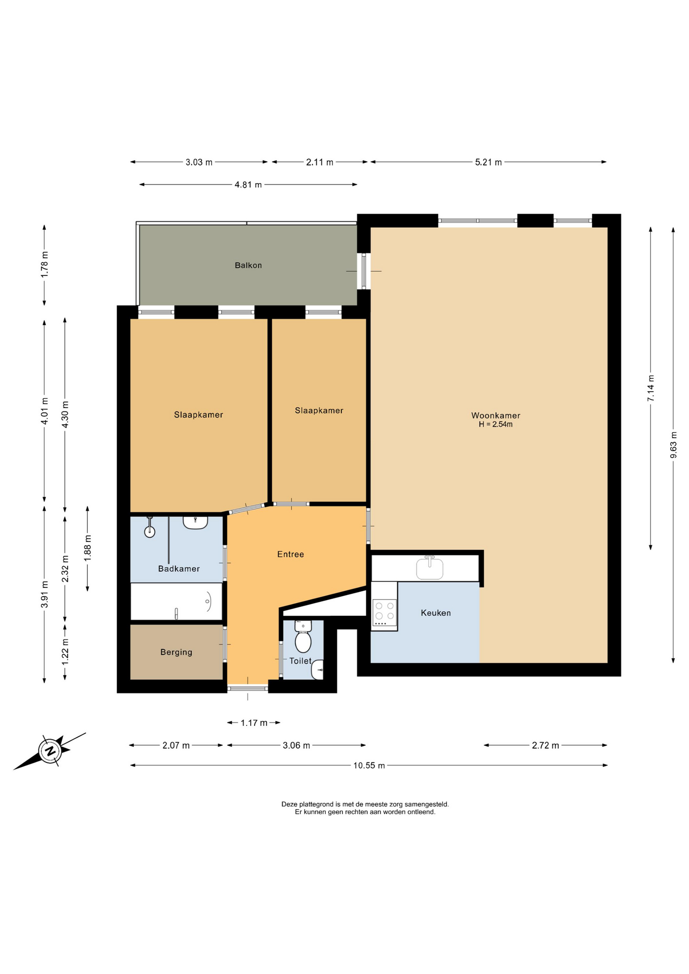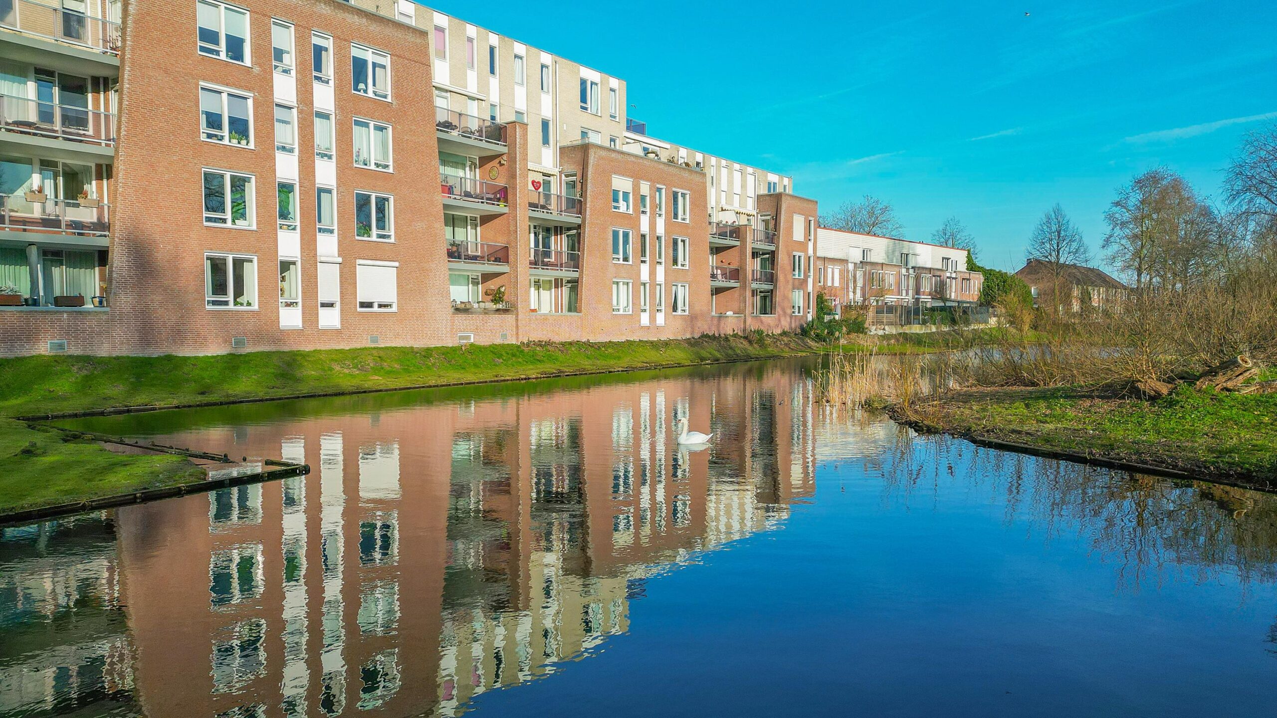 De 2 slaapkamers (ca. 13m² en 8,5m²) zijn ruim en comfortabel en bieden uitzicht op de vijver. De woonkamer van ca. 5,21m x 7,14m) is gemakkelijk in te richten. Vanaf het ruime balkon (ca. 8,5m²) is er uitzicht over de vijver. De open keuken is voorzien van een inductiekookplaat en afzuigkap. De woonkamer en keuken hebben samen een oppervlakte van ca. 50m².
