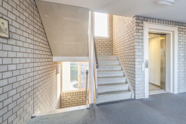 Een eigen fietsenberging (ca. 4m²) in de kelder, gemakkelijk toegankelijk via het trappenhuis, de hellingbaan of de lift, zorgt voor fijne opslagruimte. Bij binnenkomst via de hoofdentree vindt u de hal met het beltableau, het trappenhuis en de lift.