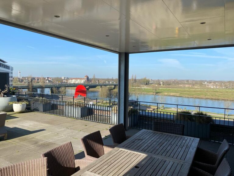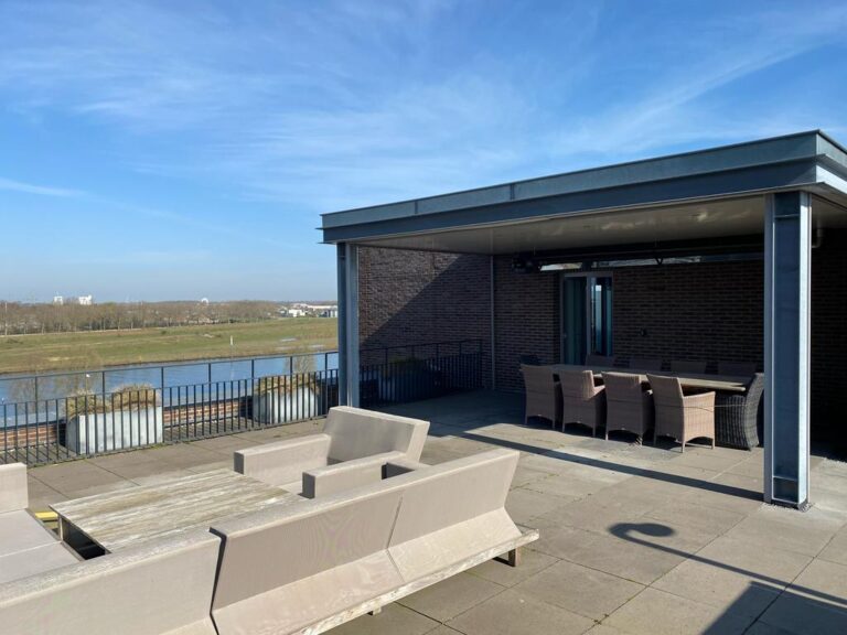 Altijd al willen wonen direct aan de oever van rivier de Maas en in het centrum van Venlo? Wij bieden u dit geheel gemeubileerde luxe penthouse gelegen op de bovenste verdieping te huur aan! Het penthouse biedt u werkelijk een fenomenaal panoramisch uitzicht over de rivier “de Maas”. Vanuit het dakterras en de woonkamer kunt u elk schip voorbij zien varen wat veel plezier en vertier geeft. Prachtige luchten zijn er elke dag bij mooi en slecht weer.