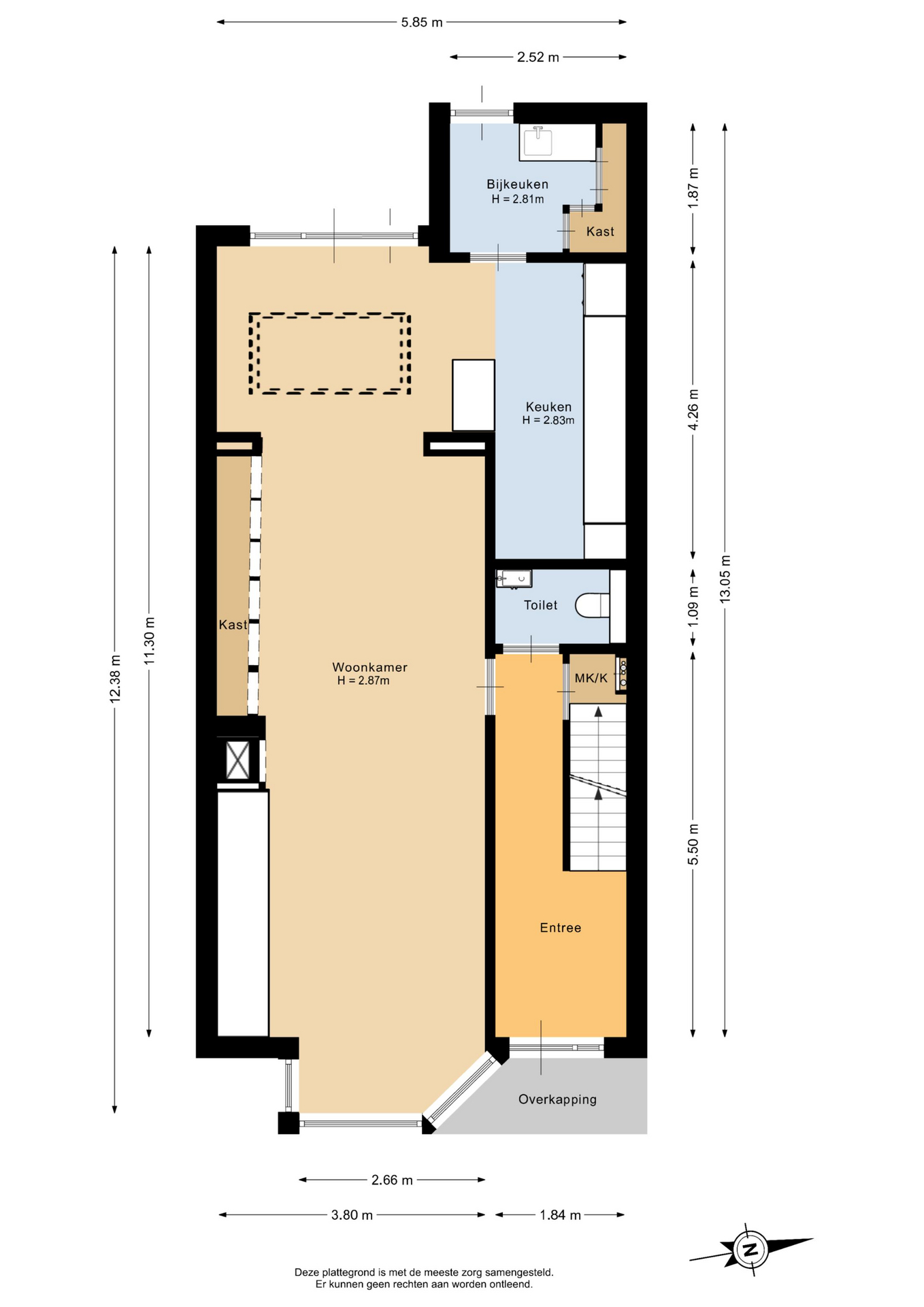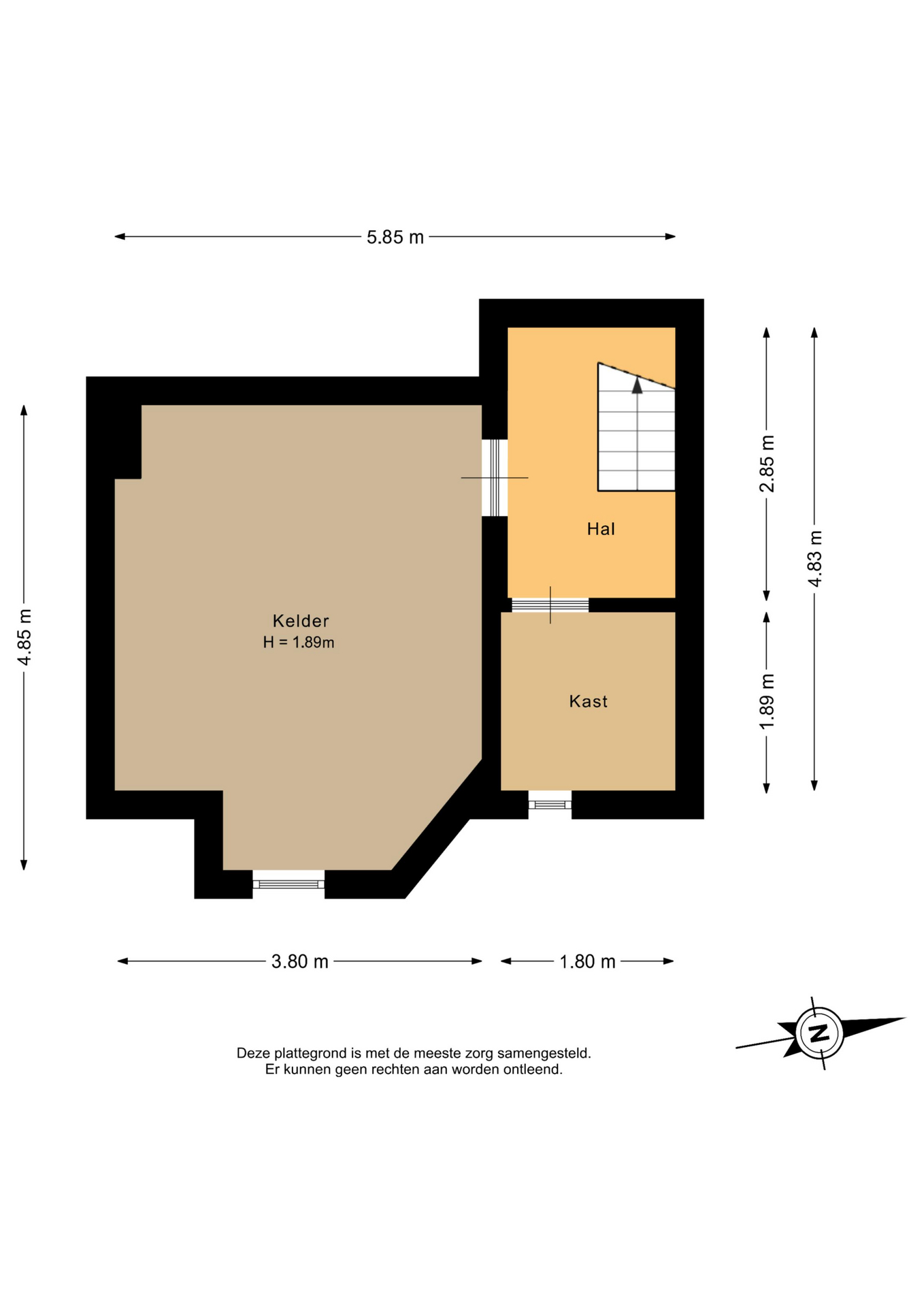 In de hal is het toilet met fonteintje aanwezig. Tevens is vanuit de hal het souterrain bereikbaar.