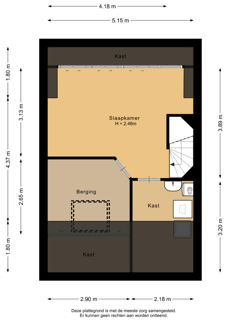 Via een vaste trap bereik je de zolderverdieping met een ruime vierde slaapkamer met dakkapel en karakteristieke schuine daklijn. Daarnaast zijn er twee praktische bergingen, waarvan één met witgoedaansluiting.
