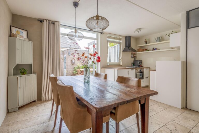 De doorzonwoonkamer met open keuken vormt het hart van de woning: een lichte en open leefruimte waar het heerlijk samenkomen is. De keuken heeft openslaande deuren naar de achtertuin – perfect om binnen en buiten met elkaar te verbinden. Met vier slaapkamers is er volop ruimte voor het hele gezin, een thuiskantoor of een hobbykamer.