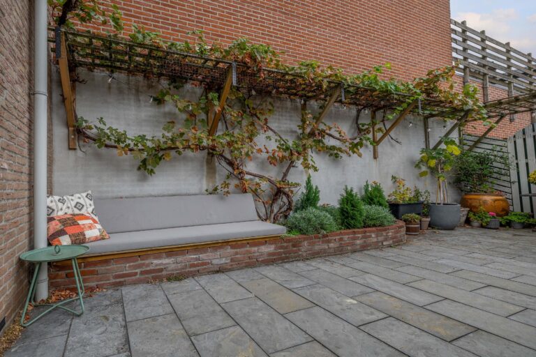 De tuin is onderhoudsvriendelijk aangelegd met plantenborders, elektra, berging en vrije achterom. Dankzij de beschutte ligging kun je hier volop genieten van rust en privacy.