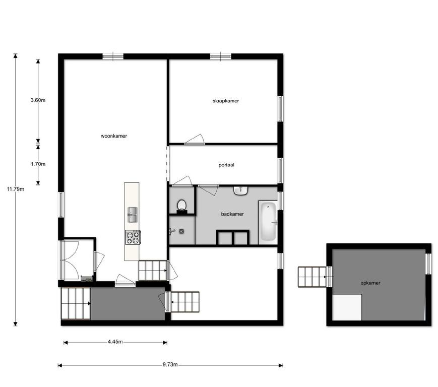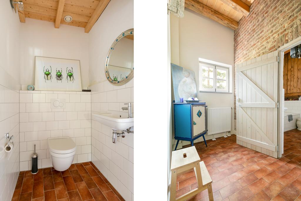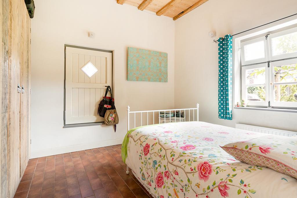 Slaapkamer van 14 m² voorzien van een tegelvloer met vloerverwarming. Een slaapkamer van ca. 13 m² in de oude opkamer, voorzien van houten vloerdelen en beperkte stahoogte tot 2 meter.