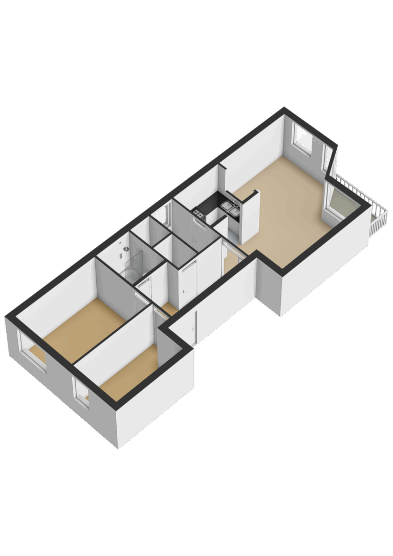 – De woonkamer, keuken en slaapkamers zijn voorzien van een laminaatvloer.