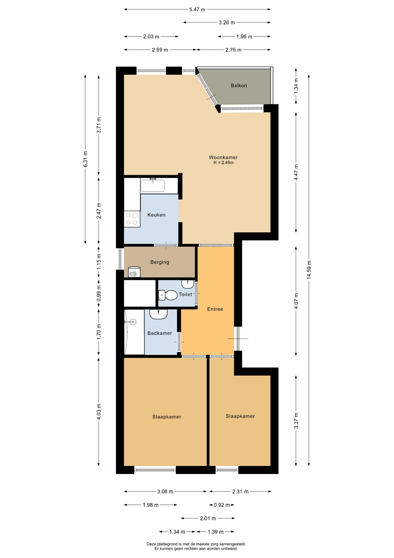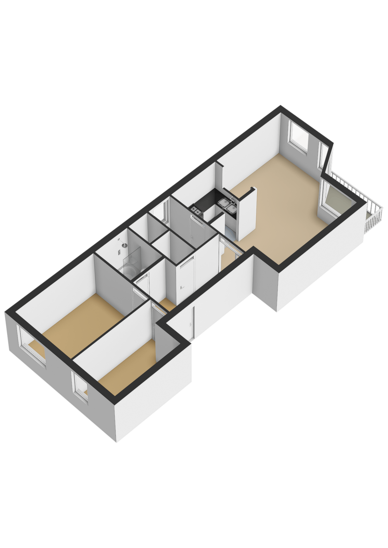 – De woonkamer, keuken en slaapkamers zijn voorzien van een laminaatvloer.