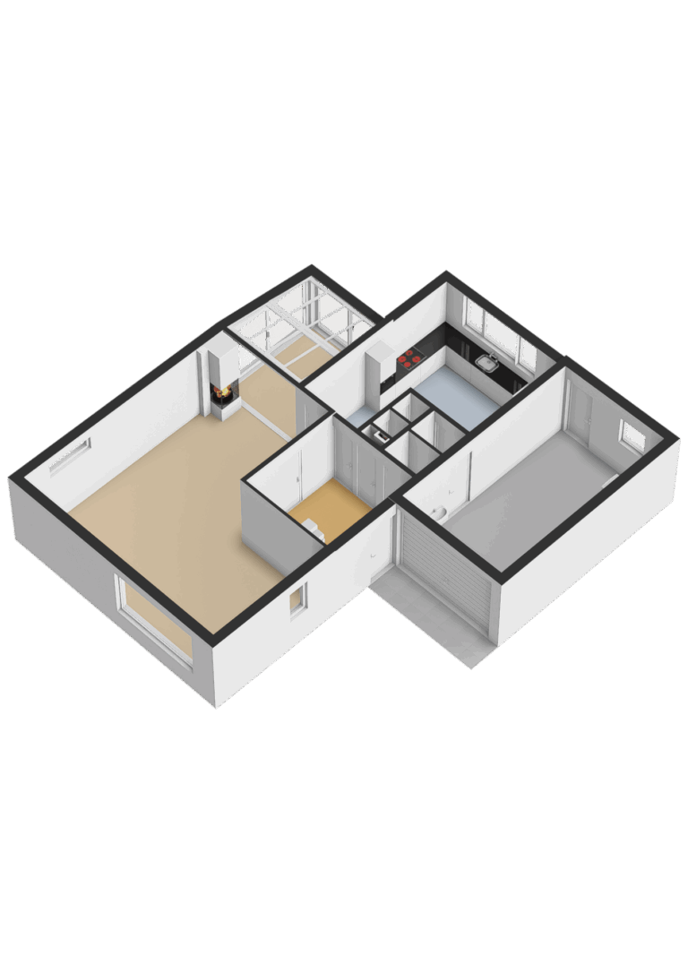 – De raam aan de voorzijde op de begane grond is voorzien van automatische zonwering van Somfy.