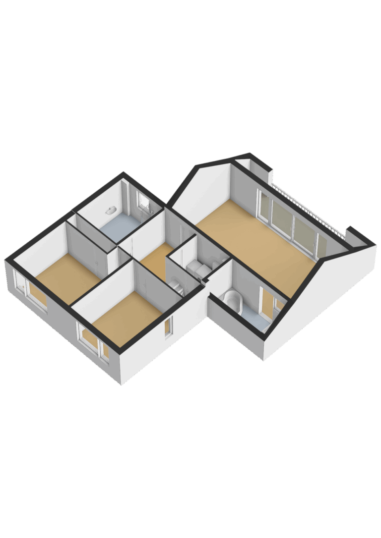 De overige twee ruime slaapkamers (ca. 12m² en 12,5m²) zijn voorzien van een zeilvloer. Eén daarvan heeft een muurkast. De tweede badkamer (ca. 8m²) heeft een douche, wastafel en 2 muurkasten.