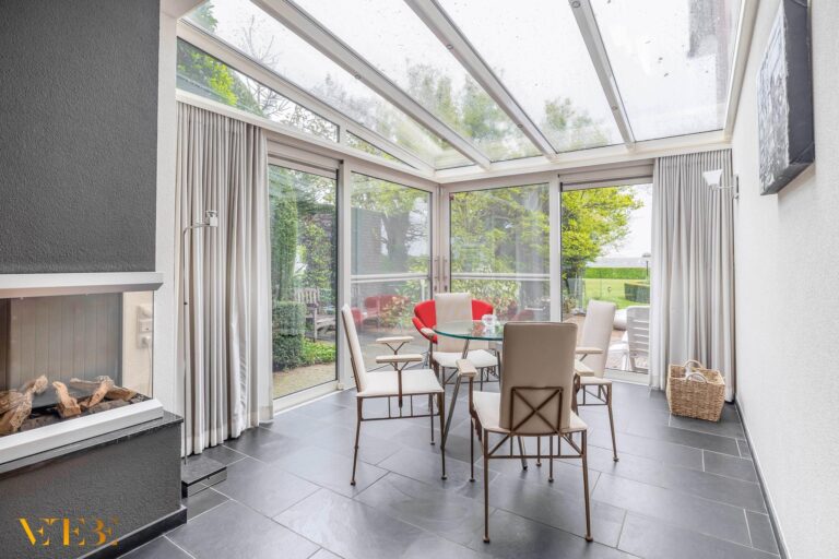 – Houten kozijnen met grotendeels dubbel glas en HR++ glas. De serre is voorzien van aluminium kozijnen met HR++ glas.