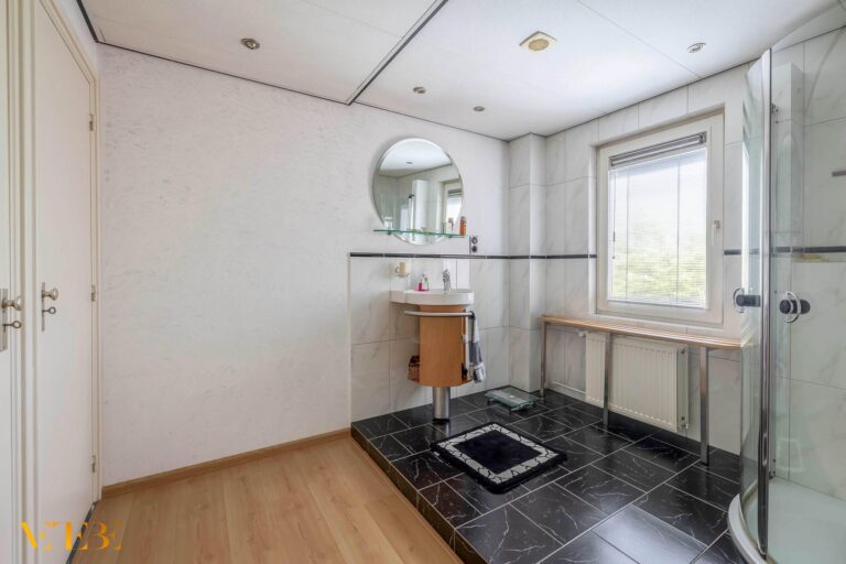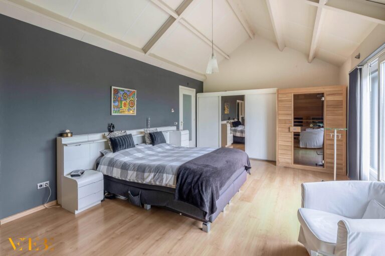 De hoofdslaapkamer (ca. 30m²) heeft een prachtig uitzicht over de eigen achtertuin en het aanwezige groen. Er ligt een laminaatvloer en er zijn een sauna en airco aanwezig. De schuifpui biedt toegang tot het balkon (ca. 10,5m²) met het prachtige uitzicht. De en-suite badkamer (ca. 6m²) is voorzien van een ligbad met douche, wastafelmeubel en mechanische ventilatie.