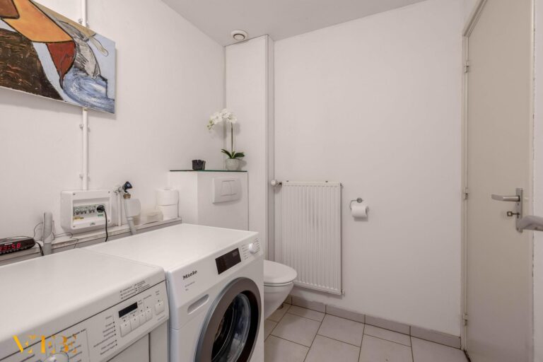 In de wasruimte zijn een toilet en de witgoedaansluiting aanwezig. Er ligt een tegelvloer. Vanuit deze ruimte is de tweede verdieping bereikbaar door middel van een vaste trap.