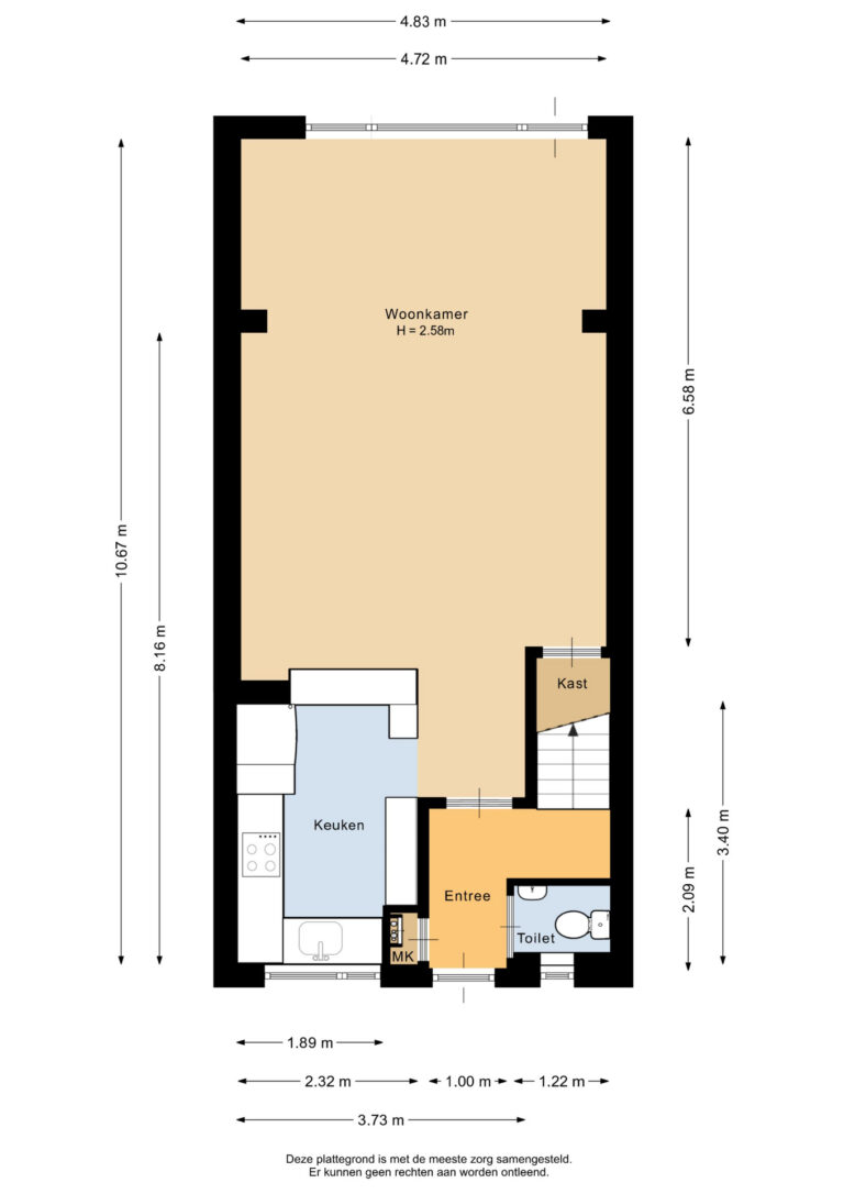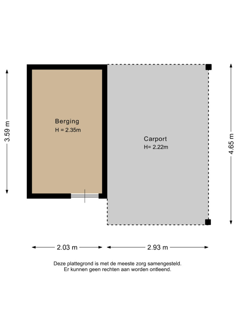 Aan de voorzijde van de woning bevindt zich de carport met stenen berging (ca. 7m²).