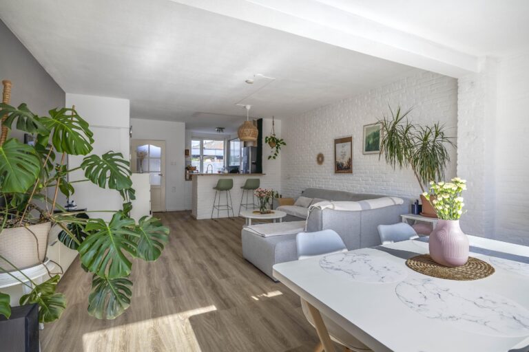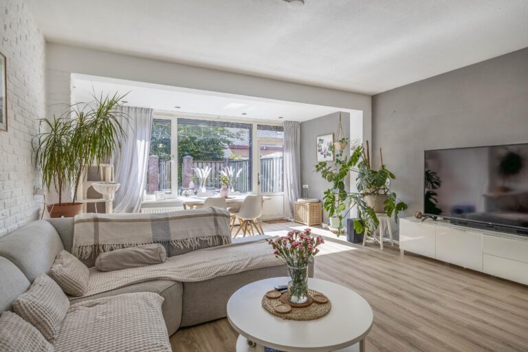 De woonkamer is uitgebouwd waardoor er een grote leefruimte is ontstaan met een oppervlakte van maar liefst 44m² (inclusief open keuken).