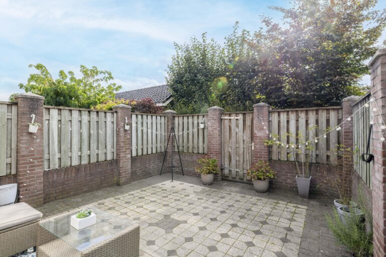 De geheel omheinde achtertuin is onderhoudsvriendelijk aangelegd. De tuin is volledig omheind en je geniet hier van optimale privacy doordat er geen inkijk is. Aan de woning bevindt zich een elektrisch zonnescherm. Achterin bevindt zich de vrije achterom.