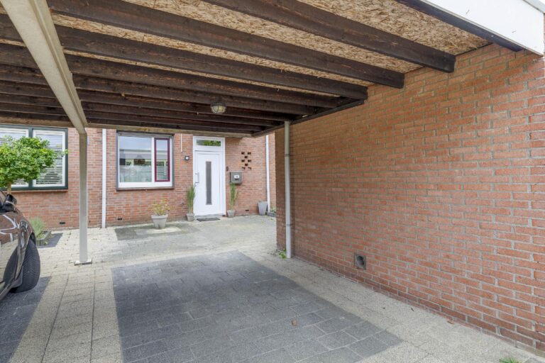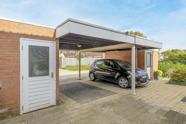 De achtertuin is omheind en je geniet hier van optimale privacy doordat er geen inkijk is. Aan de voorzijde bevindt zich de carport met daarnaast de stenen berging met elektra. Hierdoor is er op eigen terrein altijd parkeergelegenheid!